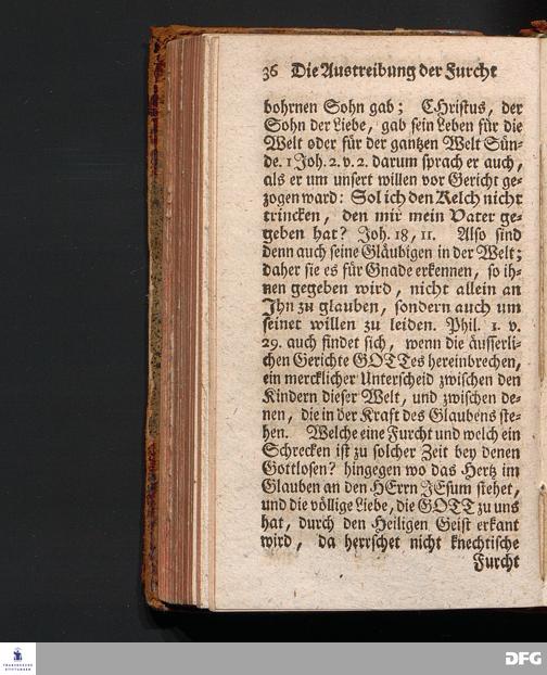 Die Austreibung Der Furcht durch die völlige Liebe, Am I.Sonntag nach Trinitatis 1719. In einer Uber die ordentliche Epistolische Lection aus I Joh.IV, 16-21. In der Universitäts=Kirche zu Leipzig auf geschehenen Antrag gehaltenen Predigt vorgestellet, und auf Begehren zum Druck gegeben, von August Hermann Francken, S.Theol.Prof.& Past.zu St.Ulrich, und des Gymnasii Scholarcha. Dritte Auflage. HALLE, in Verlegung des Wäysenhauses, 1743.