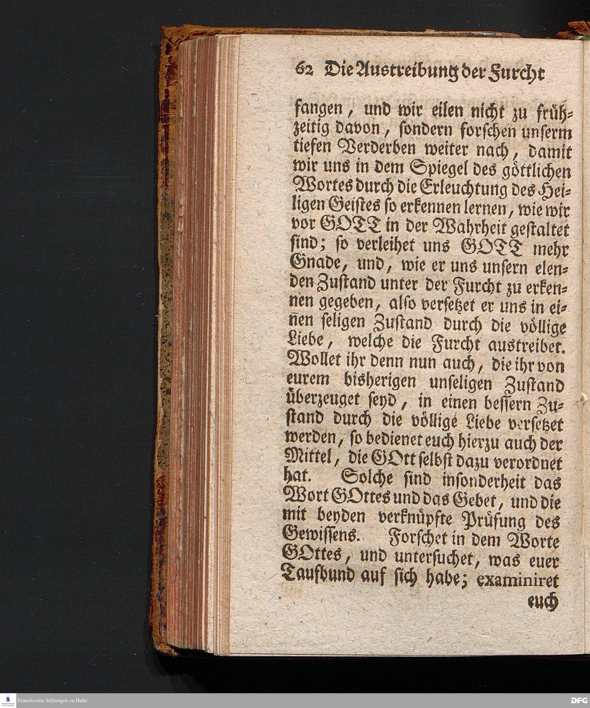 Die Austreibung Der Furcht durch die völlige Liebe, Am I.Sonntag nach Trinitatis 1719. In einer Uber die ordentliche Epistolische Lection aus I Joh.IV, 16-21. In der Universitäts=Kirche zu Leipzig auf geschehenen Antrag gehaltenen Predigt vorgestellet, und auf Begehren zum Druck gegeben, von August Hermann Francken, S.Theol.Prof.& Past.zu St.Ulrich, und des Gymnasii Scholarcha. Dritte Auflage. HALLE, in Verlegung des Wäysenhauses, 1743.