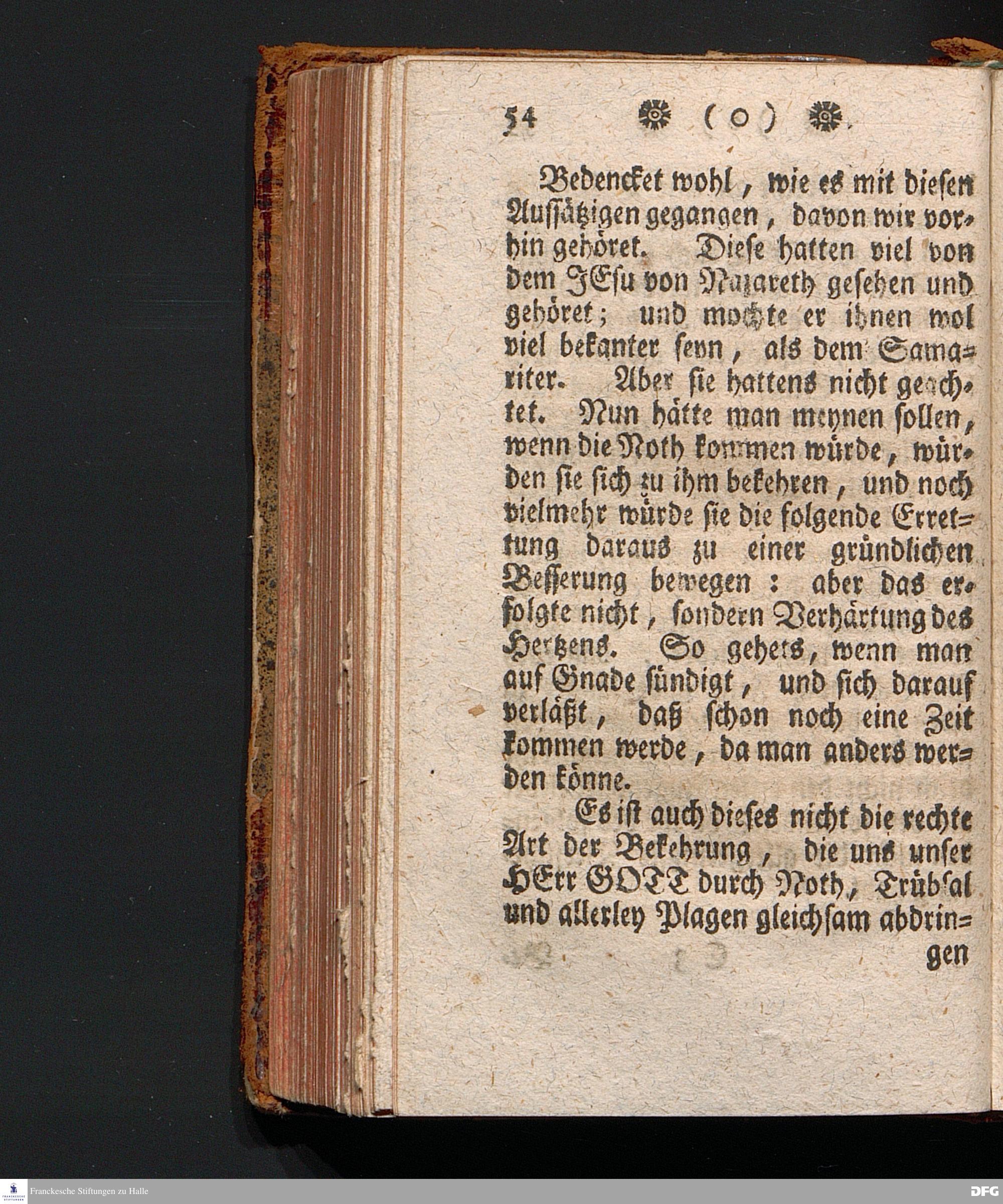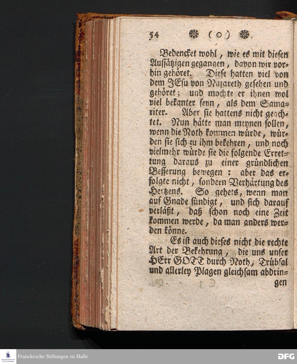 Die Bekehrung Durch Leibliche Trübsal; Wie solche Zwar öfters scheinbar, aber selten rechtschaffen sey, Am XIV.Sonnt. nach Trin. 1719. In einer über das ordentliche Evangelium Luc. XVII, 11-19. In der Guarnison-Kirche der Königl. Preuß. Residentz=Stadt Berl. Auf ergangenen Antrag gehaltenen Predigt vorgetragen, und zum Druck überlassen, Von August Hermann Francken, Prof. & Past. zu St. Ulrich in Halle, und des Gymnasii daselbst Scholarcha. Dritte Auflage. Halle, in Verlegung des Wäysenhauses, 1742.