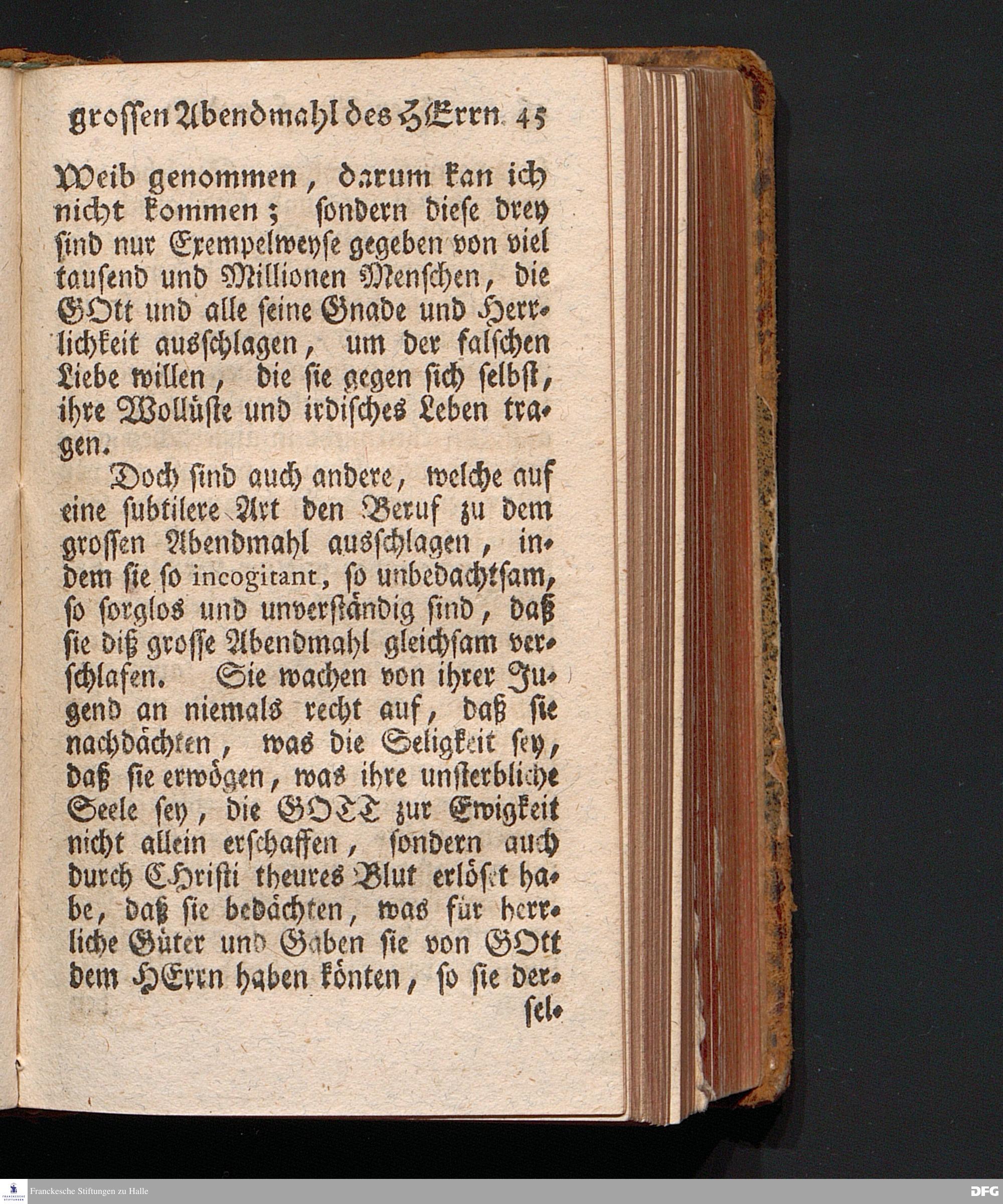 Der Beruf Zu dem Grossen Abendmahl des HERRN, Am 2.Sonntage nach Trinitatis 1720. In einer über den ordentlichen Evangel.Text Luc.XIV, 16--24. In der Kirche zu St.Nicolai der Königl.Residenz-Stadt Berlin auf Erforderung gehaltenen Predigt vorgestellet, und nach Begehren zum Druck gegeben von August Hermann Francken, S.Theol.Prof.Past.zu St.Ulrich, und des Gymnasii Scholarcha. Dritte Auflage. Der Schul=Jugend in den Glauchischen Anstalten nach gehaltenem Examine ausgetheilet den 20ten Julii 1720. HALLE, In Verlegung des Wäysenhauses. 1743.