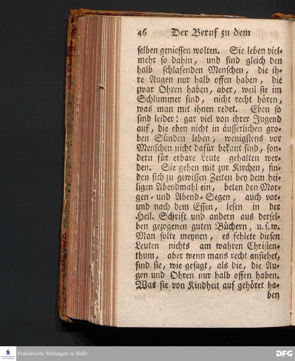 Der Beruf Zu dem Grossen Abendmahl des HERRN, Am 2.Sonntage nach Trinitatis 1720. In einer über den ordentlichen Evangel.Text Luc.XIV, 16--24. In der Kirche zu St.Nicolai der Königl.Residenz-Stadt Berlin auf Erforderung gehaltenen Predigt vorgestellet, und nach Begehren zum Druck gegeben von August Hermann Francken, S.Theol.Prof.Past.zu St.Ulrich, und des Gymnasii Scholarcha. Dritte Auflage. Der Schul=Jugend in den Glauchischen Anstalten nach gehaltenem Examine ausgetheilet den 20ten Julii 1720. HALLE, In Verlegung des Wäysenhauses. 1743.