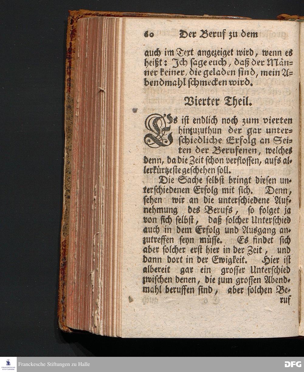 Der Beruf Zu dem Grossen Abendmahl des HERRN, Am 2.Sonntage nach Trinitatis 1720. In einer über den ordentlichen Evangel.Text Luc.XIV, 16--24. In der Kirche zu St.Nicolai der Königl.Residenz-Stadt Berlin auf Erforderung gehaltenen Predigt vorgestellet, und nach Begehren zum Druck gegeben von August Hermann Francken, S.Theol.Prof.Past.zu St.Ulrich, und des Gymnasii Scholarcha. Dritte Auflage. Der Schul=Jugend in den Glauchischen Anstalten nach gehaltenem Examine ausgetheilet den 20ten Julii 1720. HALLE, In Verlegung des Wäysenhauses. 1743.