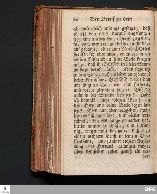 Der Beruf Zu dem Grossen Abendmahl des HERRN, Am 2.Sonntage nach Trinitatis 1720. In einer über den ordentlichen Evangel.Text Luc.XIV, 16--24. In der Kirche zu St.Nicolai der Königl.Residenz-Stadt Berlin auf Erforderung gehaltenen Predigt vorgestellet, und nach Begehren zum Druck gegeben von August Hermann Francken, S.Theol.Prof.Past.zu St.Ulrich, und des Gymnasii Scholarcha. Dritte Auflage. Der Schul=Jugend in den Glauchischen Anstalten nach gehaltenem Examine ausgetheilet den 20ten Julii 1720. HALLE, In Verlegung des Wäysenhauses. 1743.