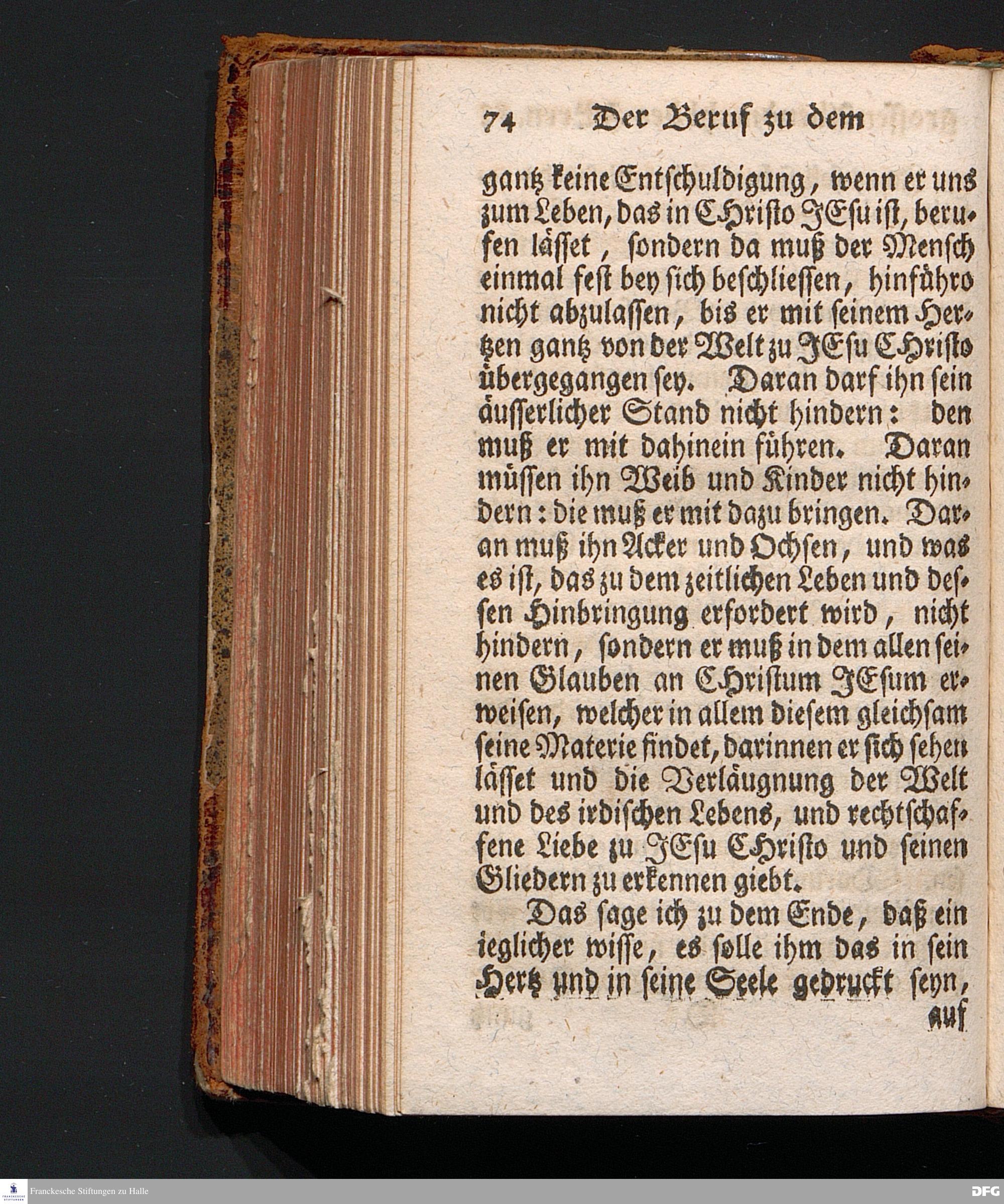 Der Beruf Zu dem Grossen Abendmahl des HERRN, Am 2.Sonntage nach Trinitatis 1720. In einer über den ordentlichen Evangel.Text Luc.XIV, 16--24. In der Kirche zu St.Nicolai der Königl.Residenz-Stadt Berlin auf Erforderung gehaltenen Predigt vorgestellet, und nach Begehren zum Druck gegeben von August Hermann Francken, S.Theol.Prof.Past.zu St.Ulrich, und des Gymnasii Scholarcha. Dritte Auflage. Der Schul=Jugend in den Glauchischen Anstalten nach gehaltenem Examine ausgetheilet den 20ten Julii 1720. HALLE, In Verlegung des Wäysenhauses. 1743.