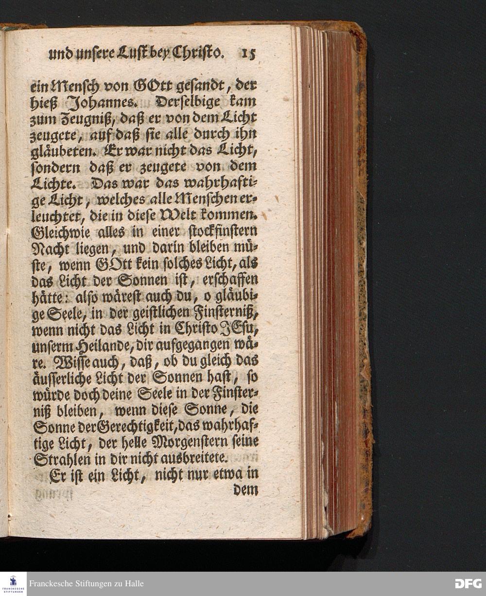 Christi Lust bey Uns, und Unsere Lust bey Christo, Am III.Christtage An.1717. In einer Uber den ordentlichen Evangelischen Text Joh.I, 1=14. In der Stadtkirchen zu Blaubeuren im Hertzogthum Würtemberg, Auf Erfordern Sr.Hochwürden des ietzigen Herrn Prälaten und gantzen Ministerii daselbst, gehaltenen Und auf Verlangen in den Druck gegebenen Predigt vorgestellet von August Hermann Francken, S.Theol.Prof.Past.und Scholarcha zu Halle im Hertzogthum Magdeburg. Zweyte Auflage. HALLE, verlegt im Wäysen=Hause, 1739.
