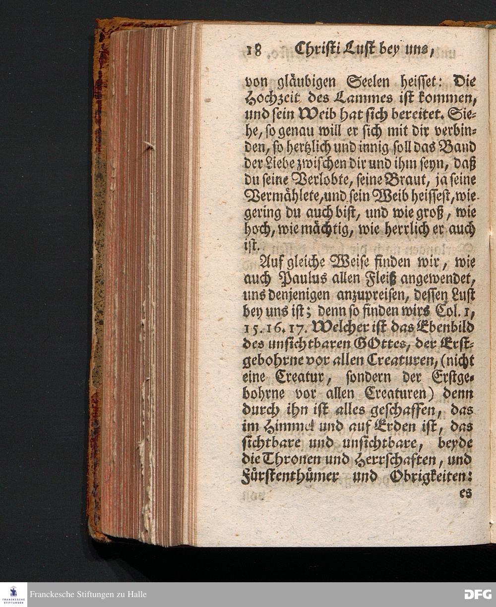 Christi Lust bey Uns, und Unsere Lust bey Christo, Am III.Christtage An.1717. In einer Uber den ordentlichen Evangelischen Text Joh.I, 1=14. In der Stadtkirchen zu Blaubeuren im Hertzogthum Würtemberg, Auf Erfordern Sr.Hochwürden des ietzigen Herrn Prälaten und gantzen Ministerii daselbst, gehaltenen Und auf Verlangen in den Druck gegebenen Predigt vorgestellet von August Hermann Francken, S.Theol.Prof.Past.und Scholarcha zu Halle im Hertzogthum Magdeburg. Zweyte Auflage. HALLE, verlegt im Wäysen=Hause, 1739.