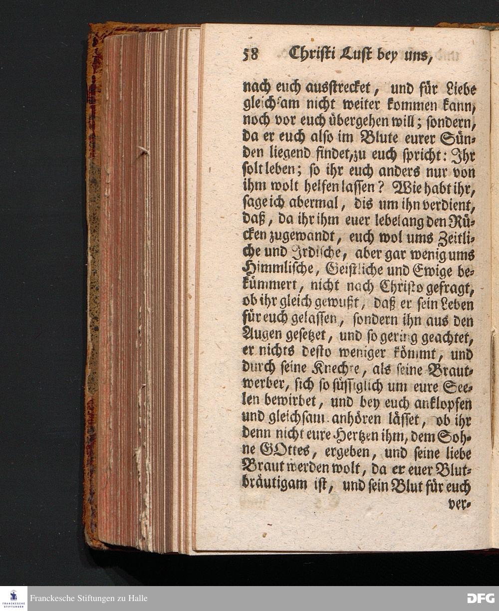 Christi Lust bey Uns, und Unsere Lust bey Christo, Am III.Christtage An.1717. In einer Uber den ordentlichen Evangelischen Text Joh.I, 1=14. In der Stadtkirchen zu Blaubeuren im Hertzogthum Würtemberg, Auf Erfordern Sr.Hochwürden des ietzigen Herrn Prälaten und gantzen Ministerii daselbst, gehaltenen Und auf Verlangen in den Druck gegebenen Predigt vorgestellet von August Hermann Francken, S.Theol.Prof.Past.und Scholarcha zu Halle im Hertzogthum Magdeburg. Zweyte Auflage. HALLE, verlegt im Wäysen=Hause, 1739.