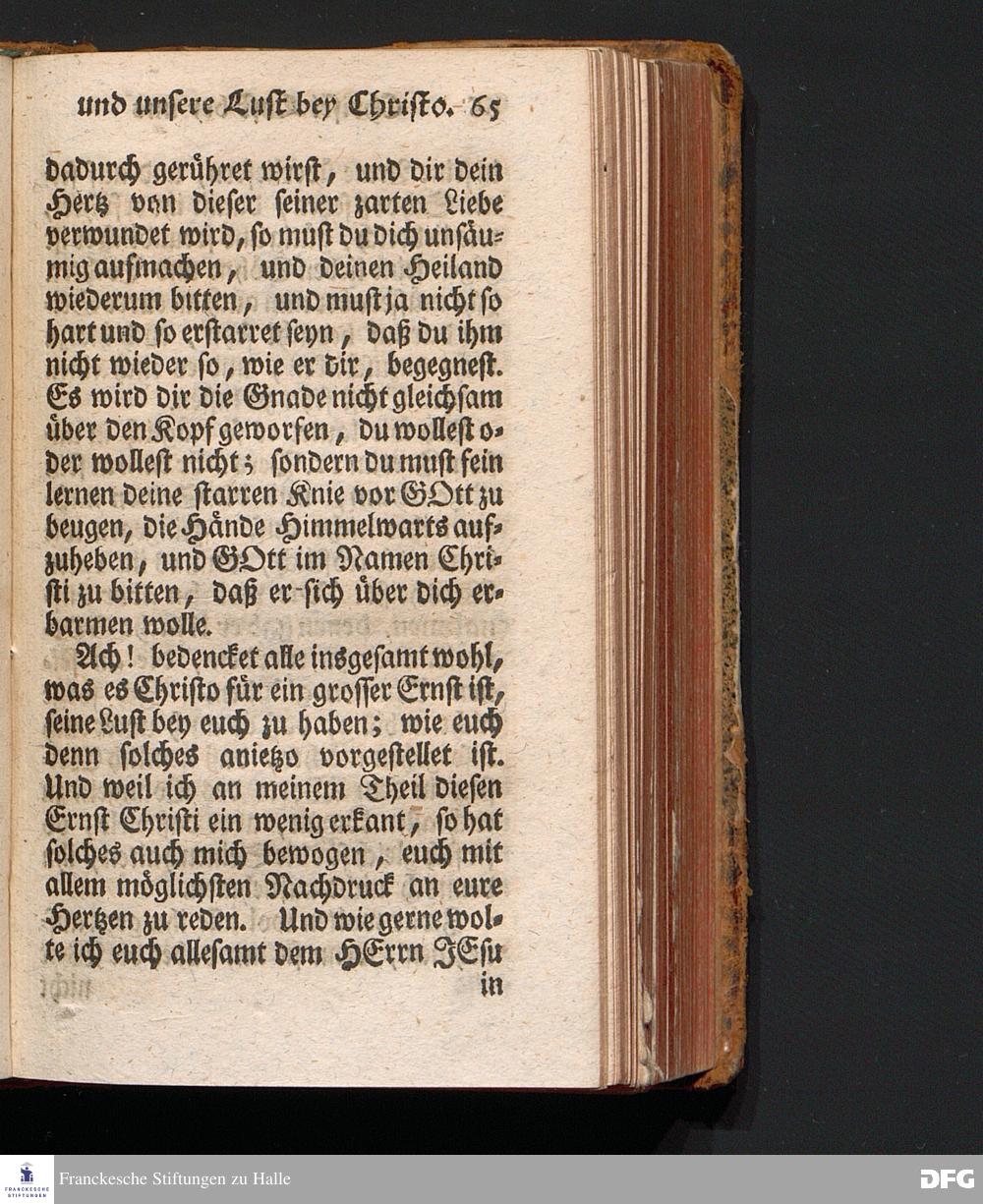 Christi Lust bey Uns, und Unsere Lust bey Christo, Am III.Christtage An.1717. In einer Uber den ordentlichen Evangelischen Text Joh.I, 1=14. In der Stadtkirchen zu Blaubeuren im Hertzogthum Würtemberg, Auf Erfordern Sr.Hochwürden des ietzigen Herrn Prälaten und gantzen Ministerii daselbst, gehaltenen Und auf Verlangen in den Druck gegebenen Predigt vorgestellet von August Hermann Francken, S.Theol.Prof.Past.und Scholarcha zu Halle im Hertzogthum Magdeburg. Zweyte Auflage. HALLE, verlegt im Wäysen=Hause, 1739.