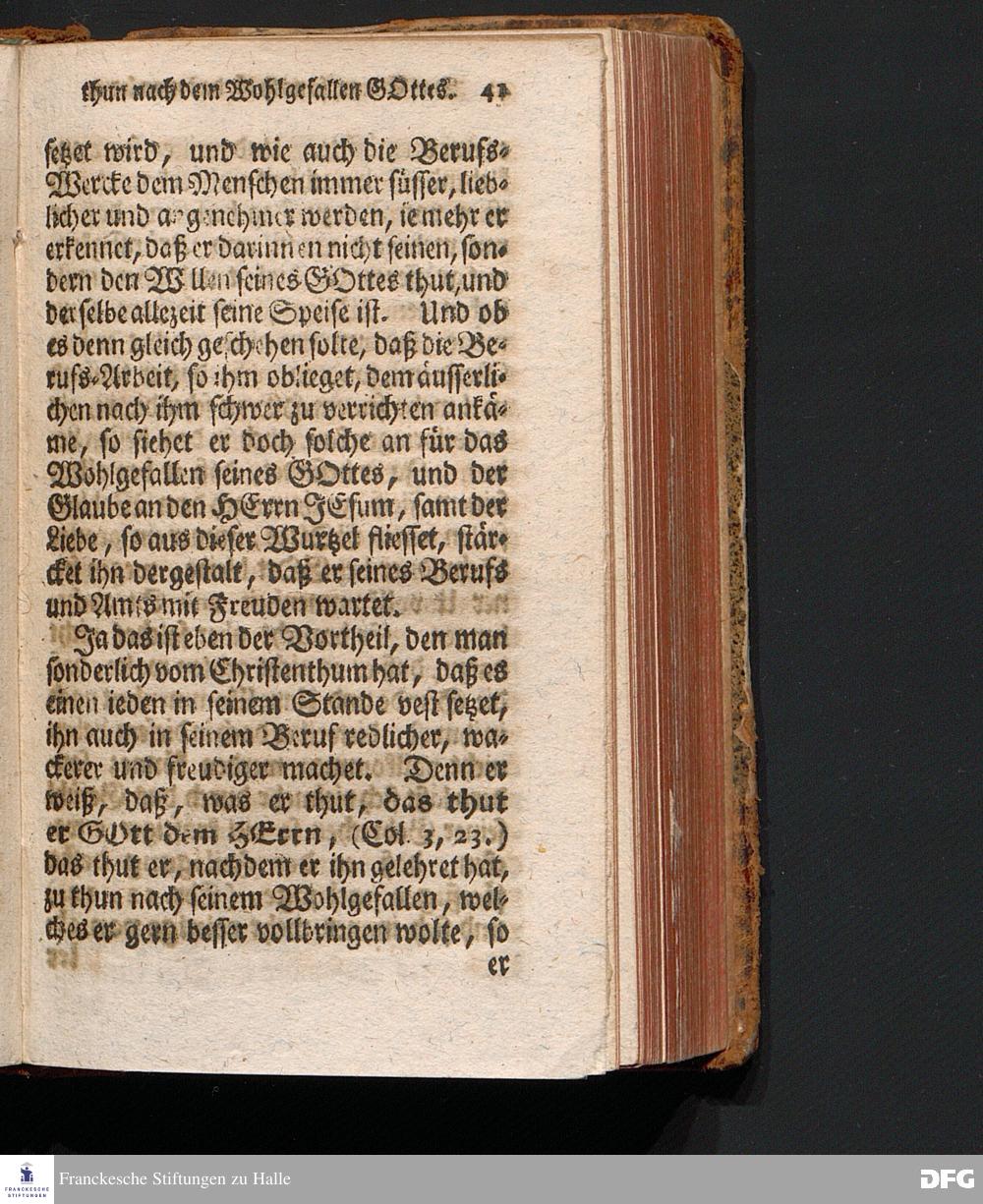 Das Einige, so noth ist, daß man lerne thun nach dem Wohlgefallen GOttes, In einer Am Sonntage Cantate 1721. aus den Worten Ps.143,10. Lehre mich thun nach deinem Wohlgefallen: denn du bist mein GOtt. Dein guter Geist führe mich auf ebener Bahn; Mit Genehmhaltung der Hochlöbl.Theol.Facultät zu Jena in der Collegen=Kirche gehaltenen Predigt vorgestellet von August Hermann Francken, S.Th.Prof.Past.Vlr.& Gymn.Schol. Dritte Auflage. HALLE, in Verlegung des Wäysen-Hause, 1742.