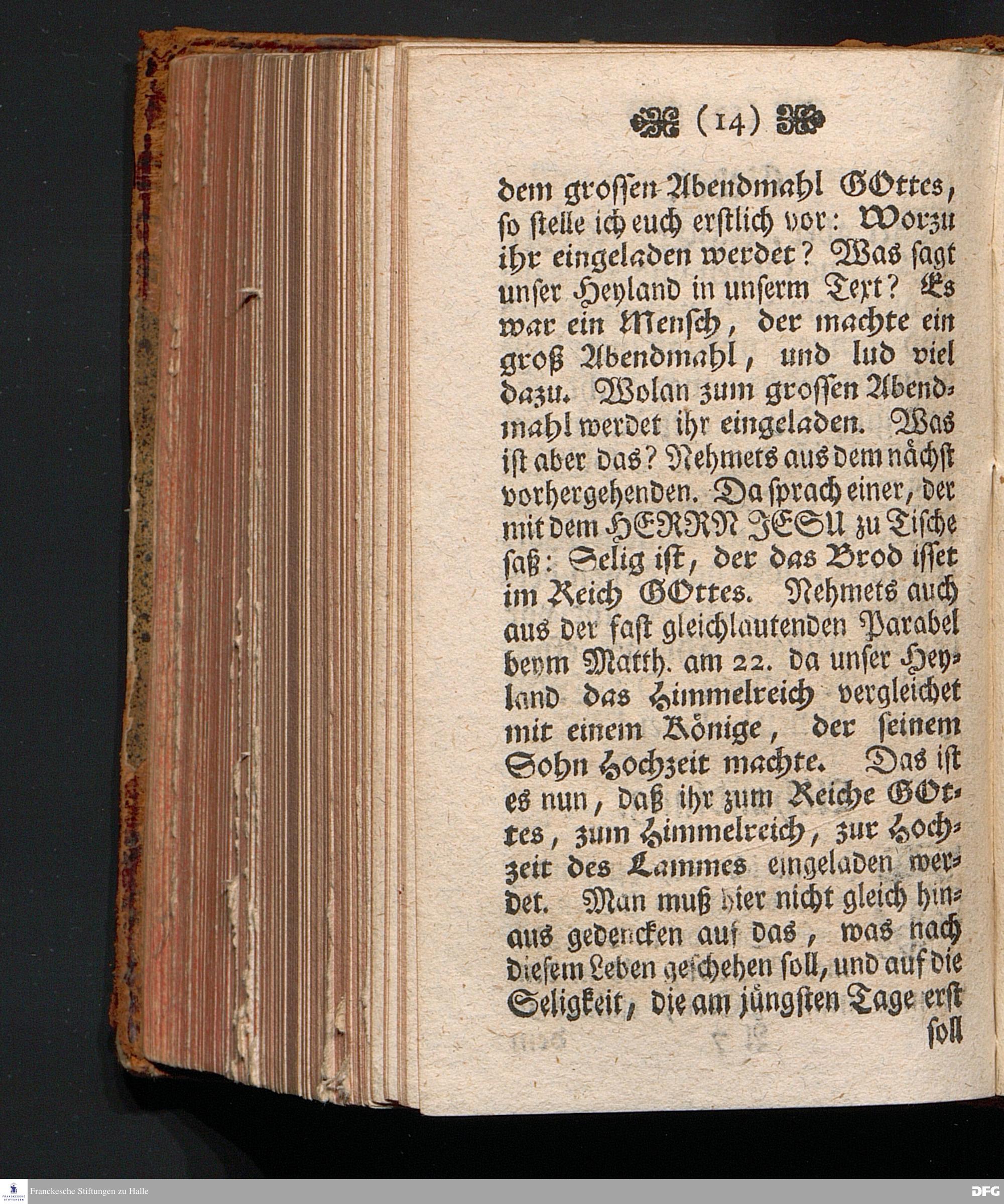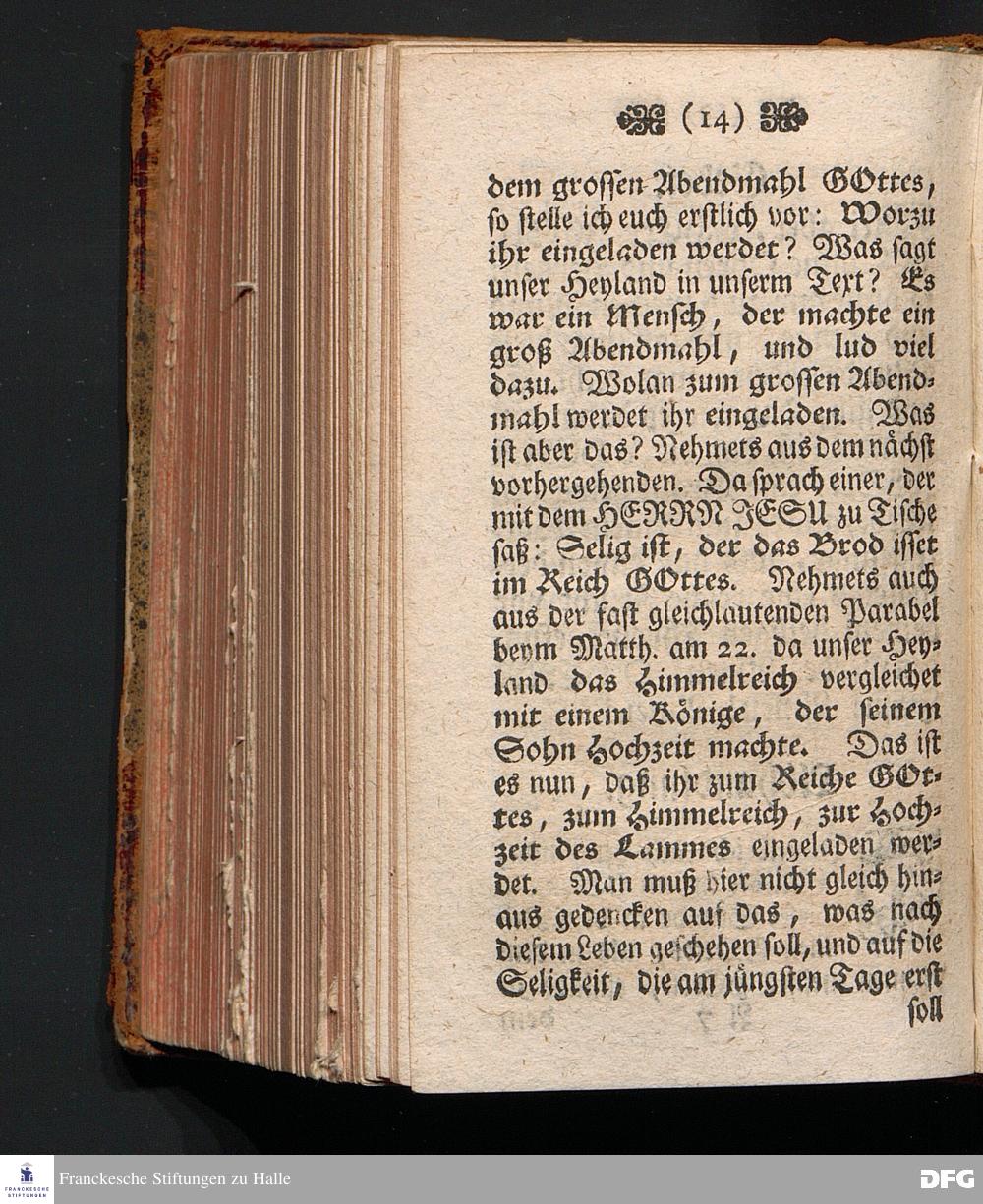 Die Einladung Zu dem Grossen Abendmahl GOttes, Aus Luc.14, 16==24. In einer zu Halle in der Schulkirche Am II.Sonntage nach Trinit. Anno 1709. Gehaltenen Predigt vorgetragen von August Hermann Francken, S.Th.Prof.Past.Vlric.& Gymn.Schol. Dritte Auflage. HALLE, zu finden im Wäysenhause, 1739.