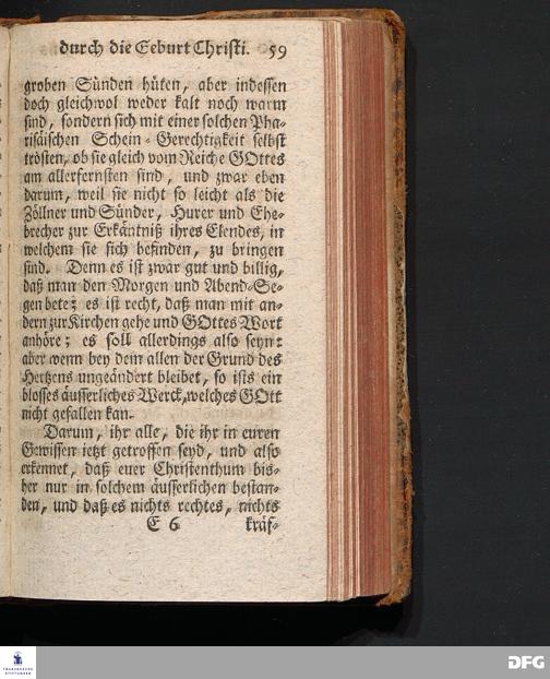 Die Erfreuung des Menschlichen Hertzens Durch die Geburt CHRISTI, Am I.Christ=Tage A.1717. In einer Uber den ordentlichen Evangelischen Text Luc.II, 1=14. In der Stadt=Kirchen zu Blaubeuren im Hertzogthum Würtemberg Auf Erfordern Sr.Hochwürden des jetzigen Herrn Prälaten und gantzen Ministerii daselbst, gehaltenen Predigt vorgestellet Und auf Begehren zum Druck gegeben von August Hermann Francken, S.Theol.Prof.Past.und Scholarcha zu Halle im Hertzogthum Magdeburg. Vierte Auflage, Nach dem zu Ulm gedruckten Exemplar. HALLE, gedruckt im Wäysen=Hause, 1740.