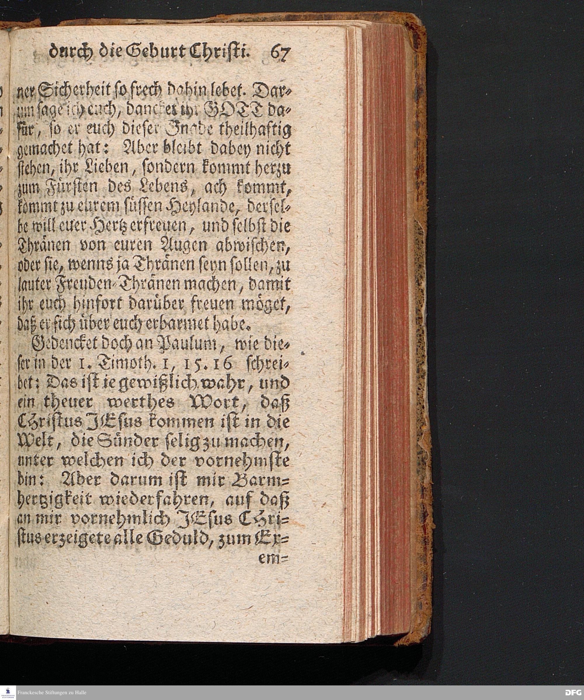 Die Erfreuung des Menschlichen Hertzens Durch die Geburt CHRISTI, Am I.Christ=Tage A.1717. In einer Uber den ordentlichen Evangelischen Text Luc.II, 1=14. In der Stadt=Kirchen zu Blaubeuren im Hertzogthum Würtemberg Auf Erfordern Sr.Hochwürden des jetzigen Herrn Prälaten und gantzen Ministerii daselbst, gehaltenen Predigt vorgestellet Und auf Begehren zum Druck gegeben von August Hermann Francken, S.Theol.Prof.Past.und Scholarcha zu Halle im Hertzogthum Magdeburg. Vierte Auflage, Nach dem zu Ulm gedruckten Exemplar. HALLE, gedruckt im Wäysen=Hause, 1740.