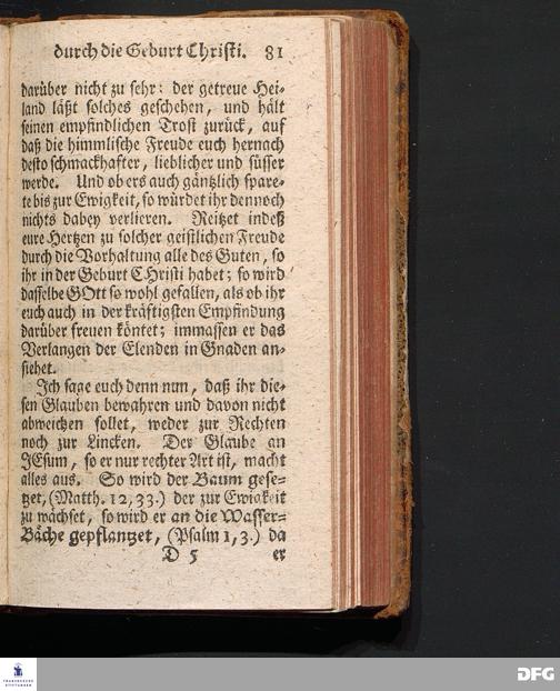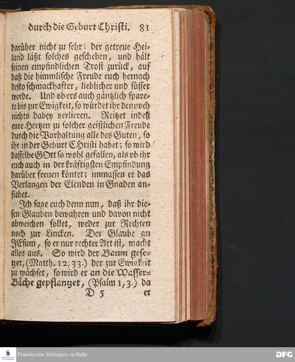 Die Erfreuung des Menschlichen Hertzens Durch die Geburt CHRISTI, Am I.Christ=Tage A.1717. In einer Uber den ordentlichen Evangelischen Text Luc.II, 1=14. In der Stadt=Kirchen zu Blaubeuren im Hertzogthum Würtemberg Auf Erfordern Sr.Hochwürden des jetzigen Herrn Prälaten und gantzen Ministerii daselbst, gehaltenen Predigt vorgestellet Und auf Begehren zum Druck gegeben von August Hermann Francken, S.Theol.Prof.Past.und Scholarcha zu Halle im Hertzogthum Magdeburg. Vierte Auflage, Nach dem zu Ulm gedruckten Exemplar. HALLE, gedruckt im Wäysen=Hause, 1740.