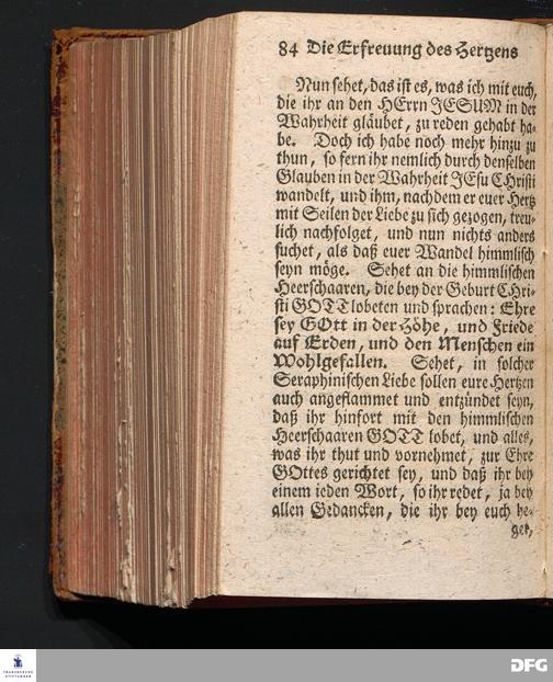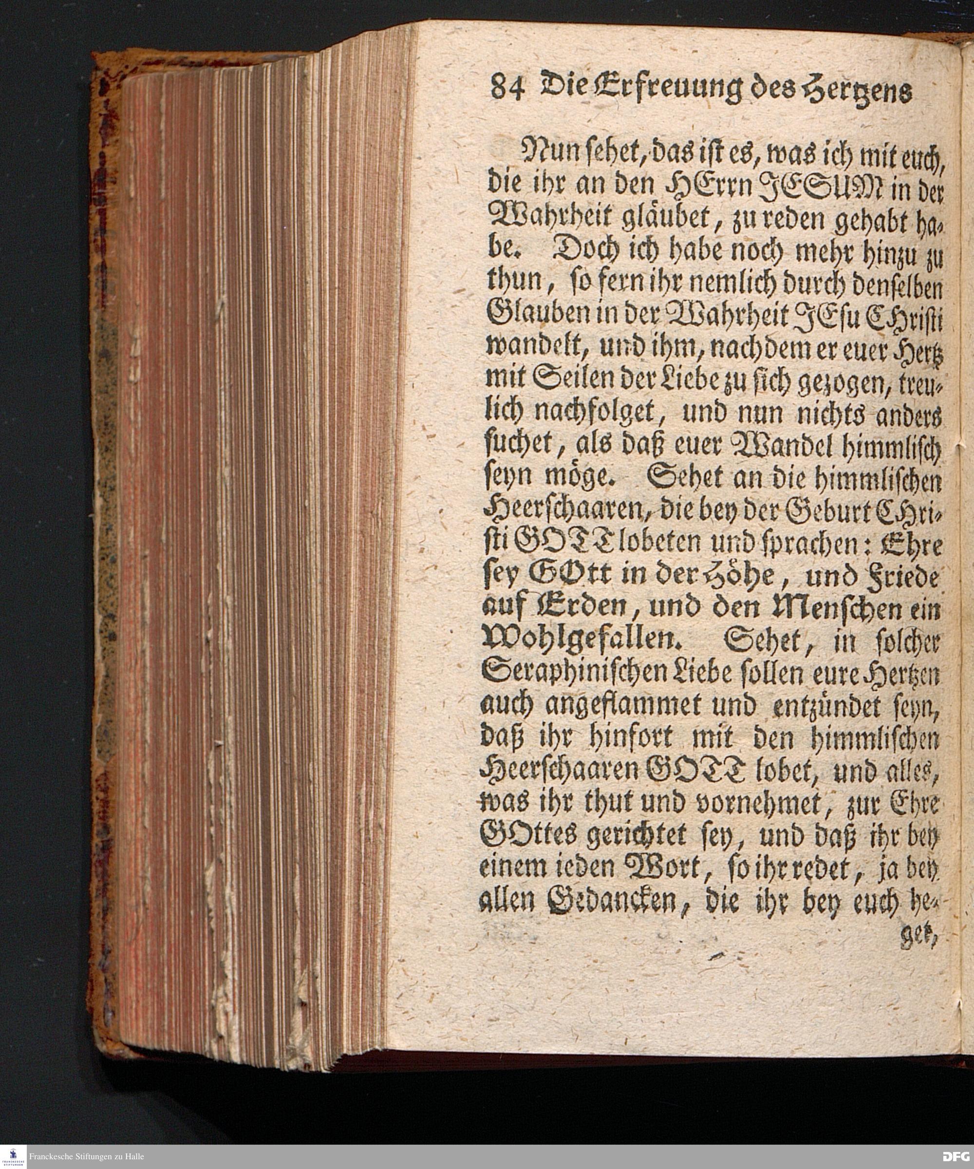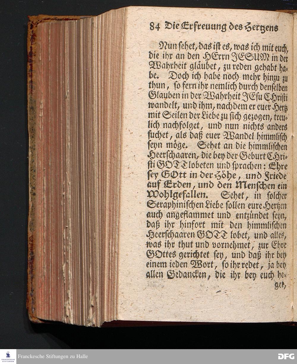 Die Erfreuung des Menschlichen Hertzens Durch die Geburt CHRISTI, Am I.Christ=Tage A.1717. In einer Uber den ordentlichen Evangelischen Text Luc.II, 1=14. In der Stadt=Kirchen zu Blaubeuren im Hertzogthum Würtemberg Auf Erfordern Sr.Hochwürden des jetzigen Herrn Prälaten und gantzen Ministerii daselbst, gehaltenen Predigt vorgestellet Und auf Begehren zum Druck gegeben von August Hermann Francken, S.Theol.Prof.Past.und Scholarcha zu Halle im Hertzogthum Magdeburg. Vierte Auflage, Nach dem zu Ulm gedruckten Exemplar. HALLE, gedruckt im Wäysen=Hause, 1740.