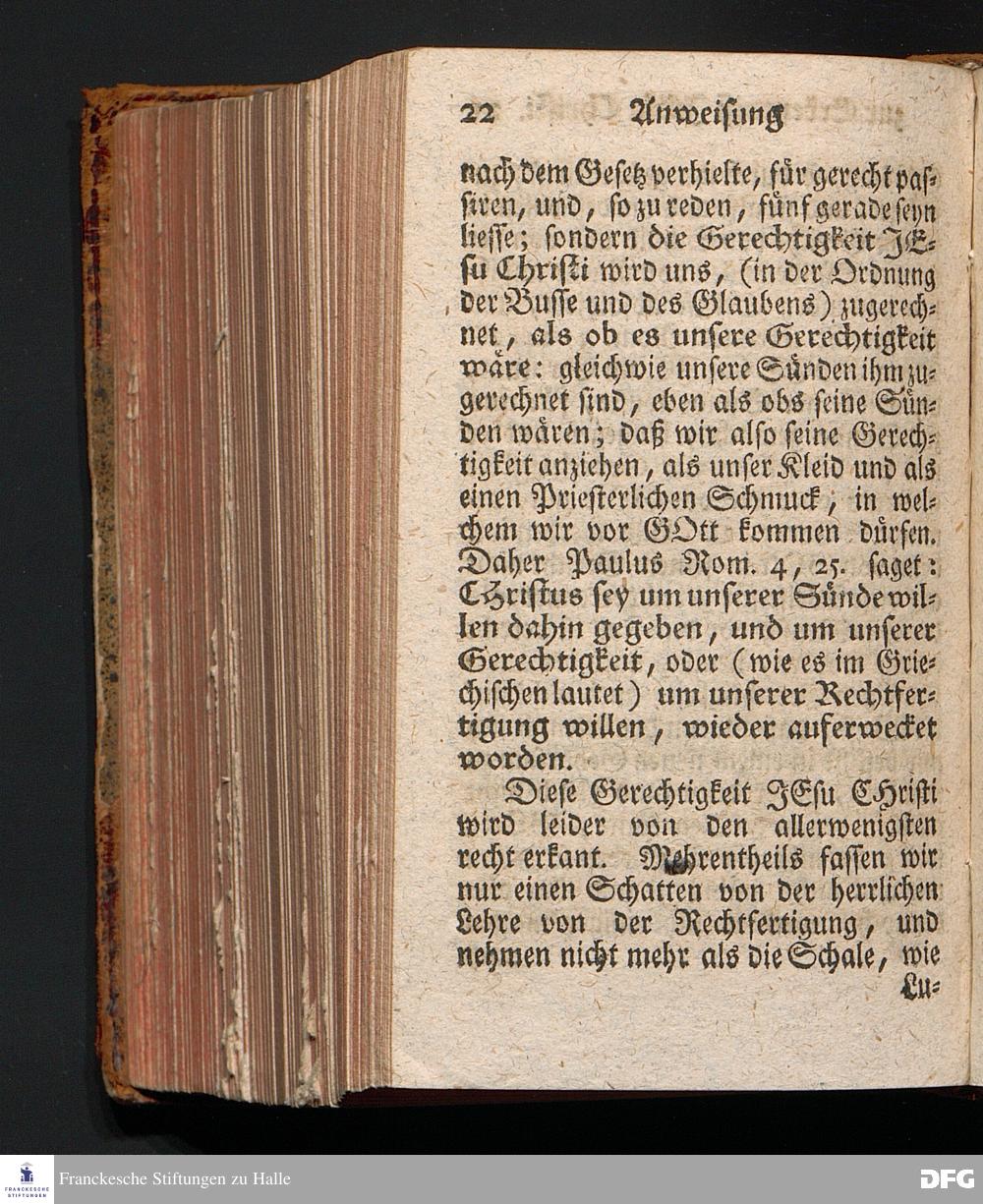 Kurtze Anweisung zur wahren, lauteren und Apostolischen Erkentniß JEsu Christi; Da In zehen Puncten, wie dieselbe nach dem Sinn und der Lehr=Art der Apostel richtig und nachdrücklich zum wahren Heyl der Seelen zu fassen sey, gezeiget wird Von August Hermann Francken, S.Theol.Prof.Ord.& Past.Ulr. Sechste Auflage. HALLE, In Verlegung des Wäysenhauses, 1742.