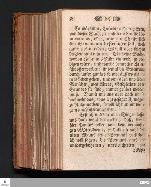 P[B]REVIS INSTITVTIO de STVDIO RENOVATIONIS oder Kurtzer Unterricht von der Erneurung, Wie sich ein jeder Gläubiger derselben nach der Richtschnur Göttlichen Worts befleißigen solle, In einer Predigt über Rom.XII, 1.2. am VII.Sonntage nach Trinitatis, Anno 1709. In der Schul=Kirche zu Halle ertheilet von August Hermann Francken / S.Theol.Prof.Ord.und Past. Die dritte Auflage. HALLE, Im Wäysenhause, 1735.
