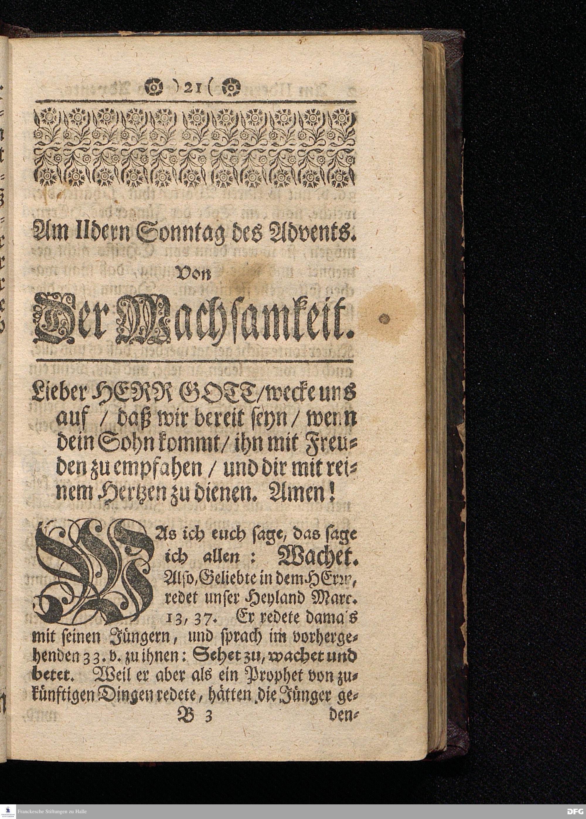 Der Rath GOttes in CHristi Zukunfft zur Tochter Zion / Nach dem Aeussern und Innern betrachtet / Und Aus dem Evangelischen Text Matth.XXI, 1-9. Am Iten Sonntag des Advents In der St.Ulrichs=Kirche in Halle, vorgestellet Von August Hermann Francken / S.Theolog.Prof.& Past.zu S.Ulrich, und des Gymnasii Scholarcha. HALLE, Gedruckt und zu finden im Wäysen=Hause. Anno 1716.