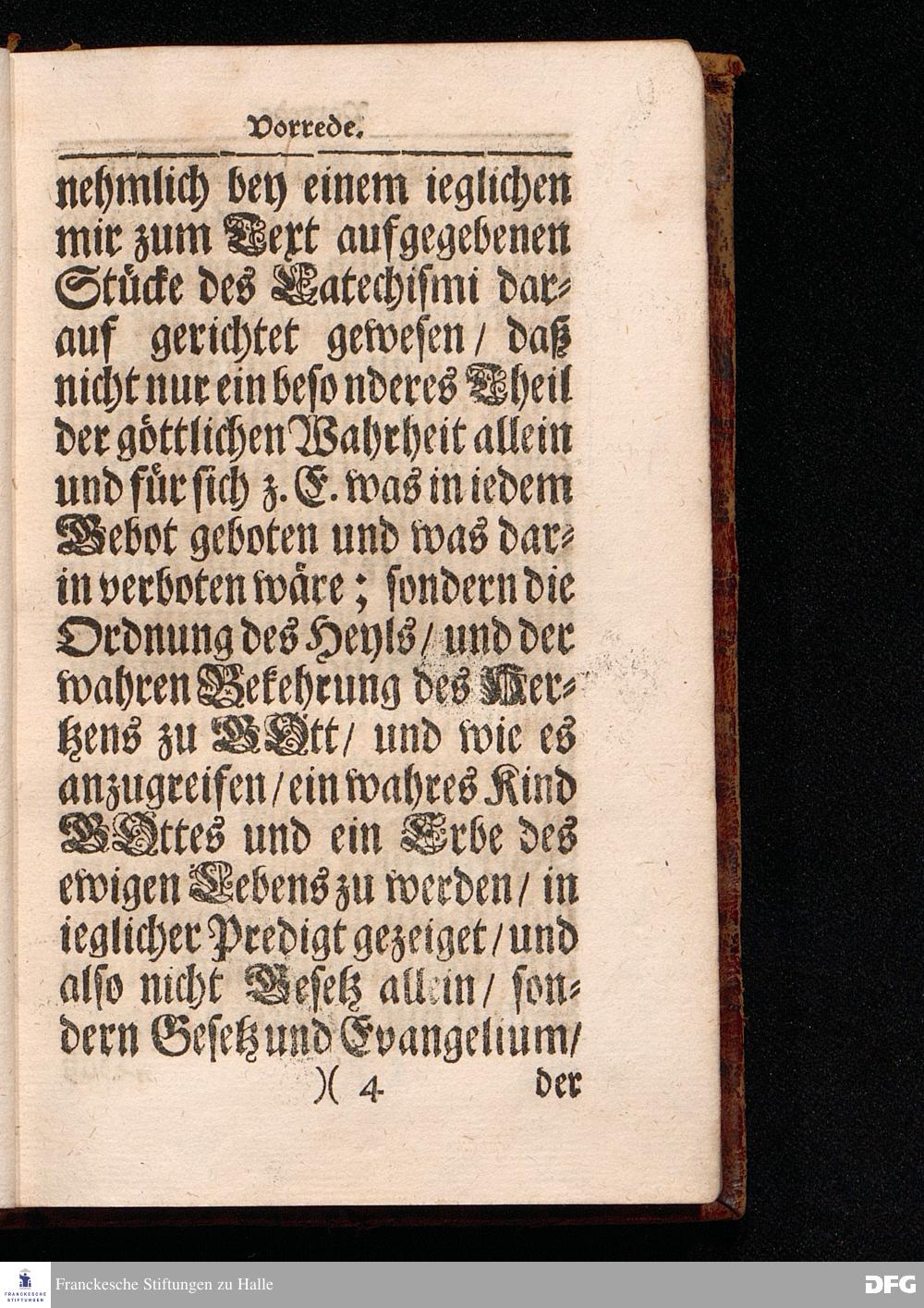 August Hermann Franckens / S.Th.Pr.Past.Vlr.& Schol. Catechismus = Predigten / Darinnen Die V.Hauptstücke des kleinen Catechismi Lutheri, zu gründlicher Erbauung im wahren thätigen Christenthum, abgehandelt sind, gehalten In der Kirche zur L.Frauen zu Halle / im Hertzogthum Magdeburg. Andere Auflage. HALLE, In Verlegung des Wäysenhauses, MDCCXXIX.