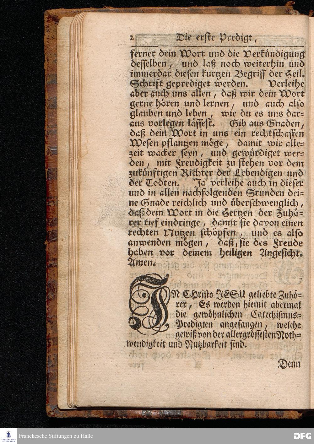August Hermann Franckens / S.Th.Pr.Past.Vlr.& Schol. Catechismus = Predigten / Darinnen Die V.Hauptstücke des kleinen Catechismi Lutheri, zu gründlicher Erbauung im wahren thätigen Christenthum, abgehandelt sind, gehalten In der Kirche zur L.Frauen zu Halle / im Hertzogthum Magdeburg. Andere Auflage. HALLE, In Verlegung des Wäysenhauses, MDCCXXIX.