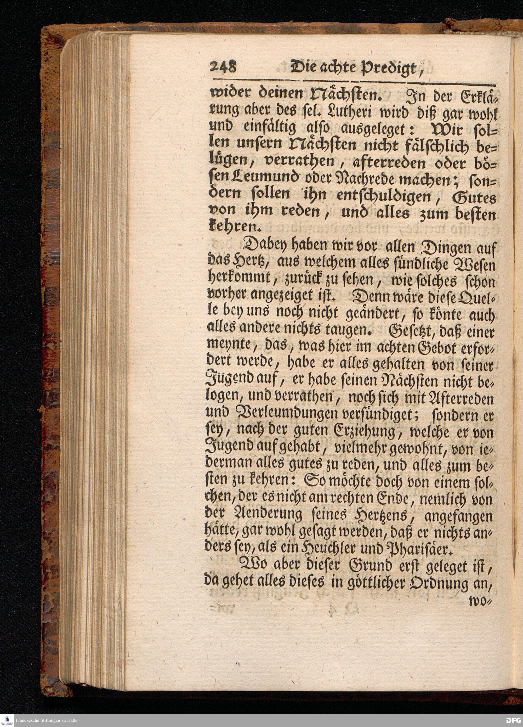 August Hermann Franckens / S.Th.Pr.Past.Vlr.& Schol. Catechismus = Predigten / Darinnen Die V.Hauptstücke des kleinen Catechismi Lutheri, zu gründlicher Erbauung im wahren thätigen Christenthum, abgehandelt sind, gehalten In der Kirche zur L.Frauen zu Halle / im Hertzogthum Magdeburg. Andere Auflage. HALLE, In Verlegung des Wäysenhauses, MDCCXXIX.