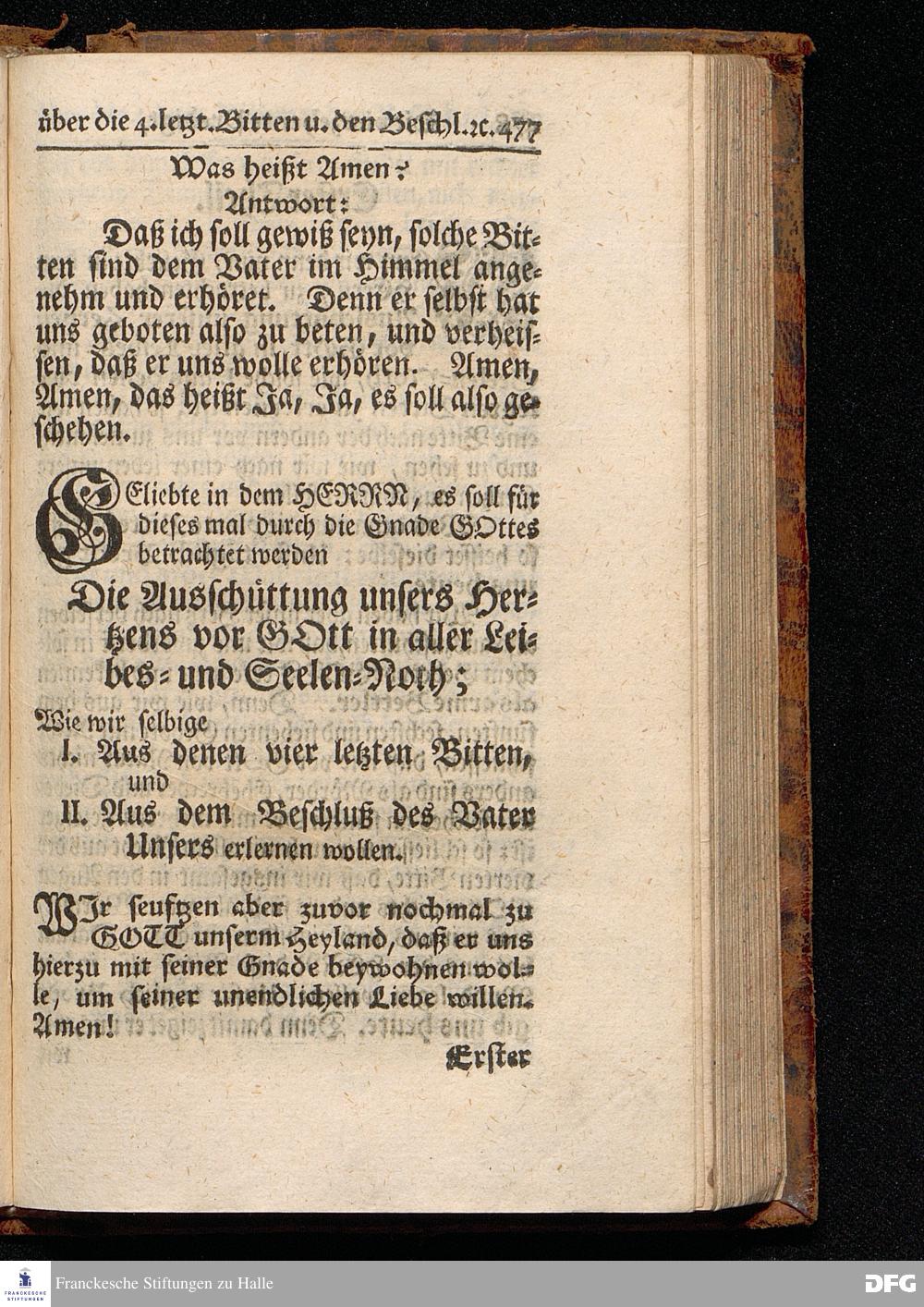 August Hermann Franckens / S.Th.Pr.Past.Vlr.& Schol. Catechismus = Predigten / Darinnen Die V.Hauptstücke des kleinen Catechismi Lutheri, zu gründlicher Erbauung im wahren thätigen Christenthum, abgehandelt sind, gehalten In der Kirche zur L.Frauen zu Halle / im Hertzogthum Magdeburg. Andere Auflage. HALLE, In Verlegung des Wäysenhauses, MDCCXXIX.