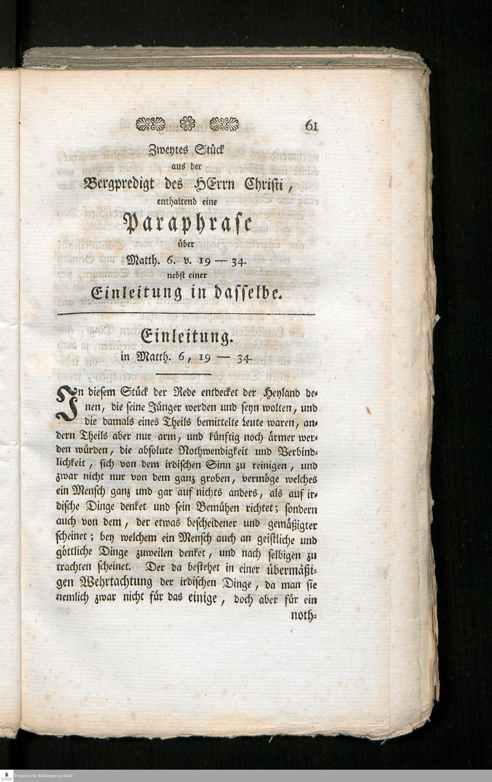 Weil. Herrn Hofprediger F. M. Ziegenhagens Paraphrases über einige wichtige Stücke aus dem Evangelisten Matthäo / Herausgegeben von Friedr. Willh. Pasche
