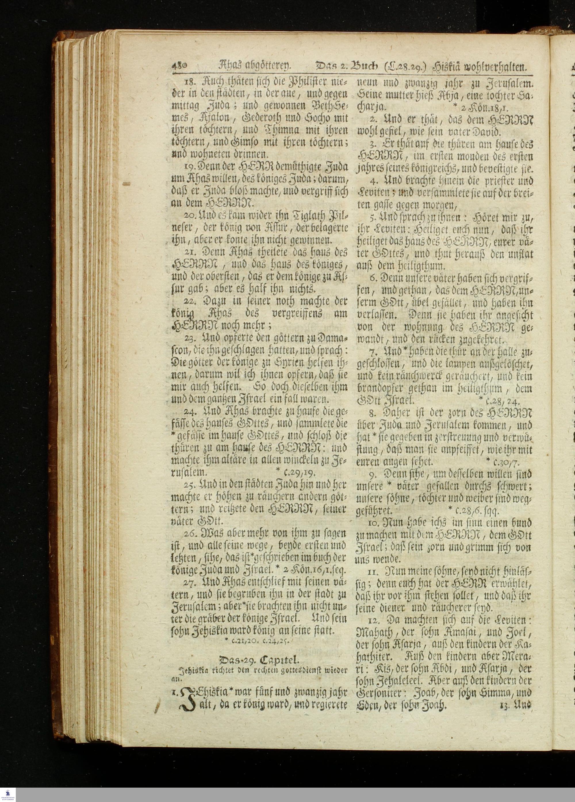 Biblia, Das ist: Die gantze Heil. Schrift Altes und Neues Testaments / Nach der Teutschen Ubersetzung D. Martin Luthers; Mit iedes Capitels kurtzen Summarien, auch beygefügten vielen und richtigen Parallelen; Mit fleiß übersehen/ und gegen einige/ sonderlich erstere/ Editiones des sel. Mannes gehalten, auch an unterschiedlichen Orten nach denselben eingerichtet, und von vielen in den bisherigen Exemplarien hin und wieder eingeschlichenen Fehlern gesaubert. Nebst einer Vorrede Herrn Baron Carl Hildebrands von Canstein.