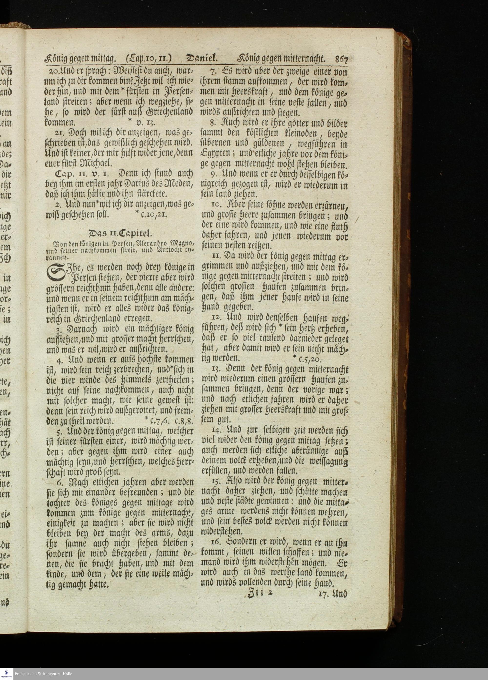Biblia, Das ist: Die gantze Heil. Schrift Altes und Neues Testaments / Nach der Teutschen Ubersetzung D. Martin Luthers; Mit iedes Capitels kurtzen Summarien, auch beygefügten vielen und richtigen Parallelen; Mit fleiß übersehen/ und gegen einige/ sonderlich erstere/ Editiones des sel. Mannes gehalten, auch an unterschiedlichen Orten nach denselben eingerichtet, und von vielen in den bisherigen Exemplarien hin und wieder eingeschlichenen Fehlern gesaubert. Nebst einer Vorrede Herrn Baron Carl Hildebrands von Canstein.