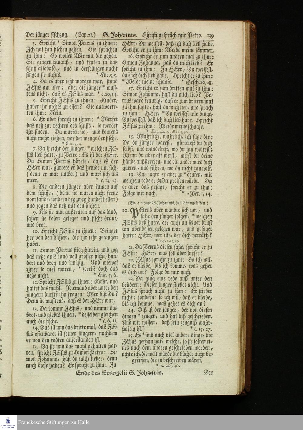 Biblia, Das ist: Die gantze Heil. Schrift Altes und Neues Testaments / Nach der Teutschen Ubersetzung D. Martin Luthers; Mit iedes Capitels kurtzen Summarien, auch beygefügten vielen und richtigen Parallelen; Mit fleiß übersehen/ und gegen einige/ sonderlich erstere/ Editiones des sel. Mannes gehalten, auch an unterschiedlichen Orten nach denselben eingerichtet, und von vielen in den bisherigen Exemplarien hin und wieder eingeschlichenen Fehlern gesaubert. Nebst einer Vorrede Herrn Baron Carl Hildebrands von Canstein.