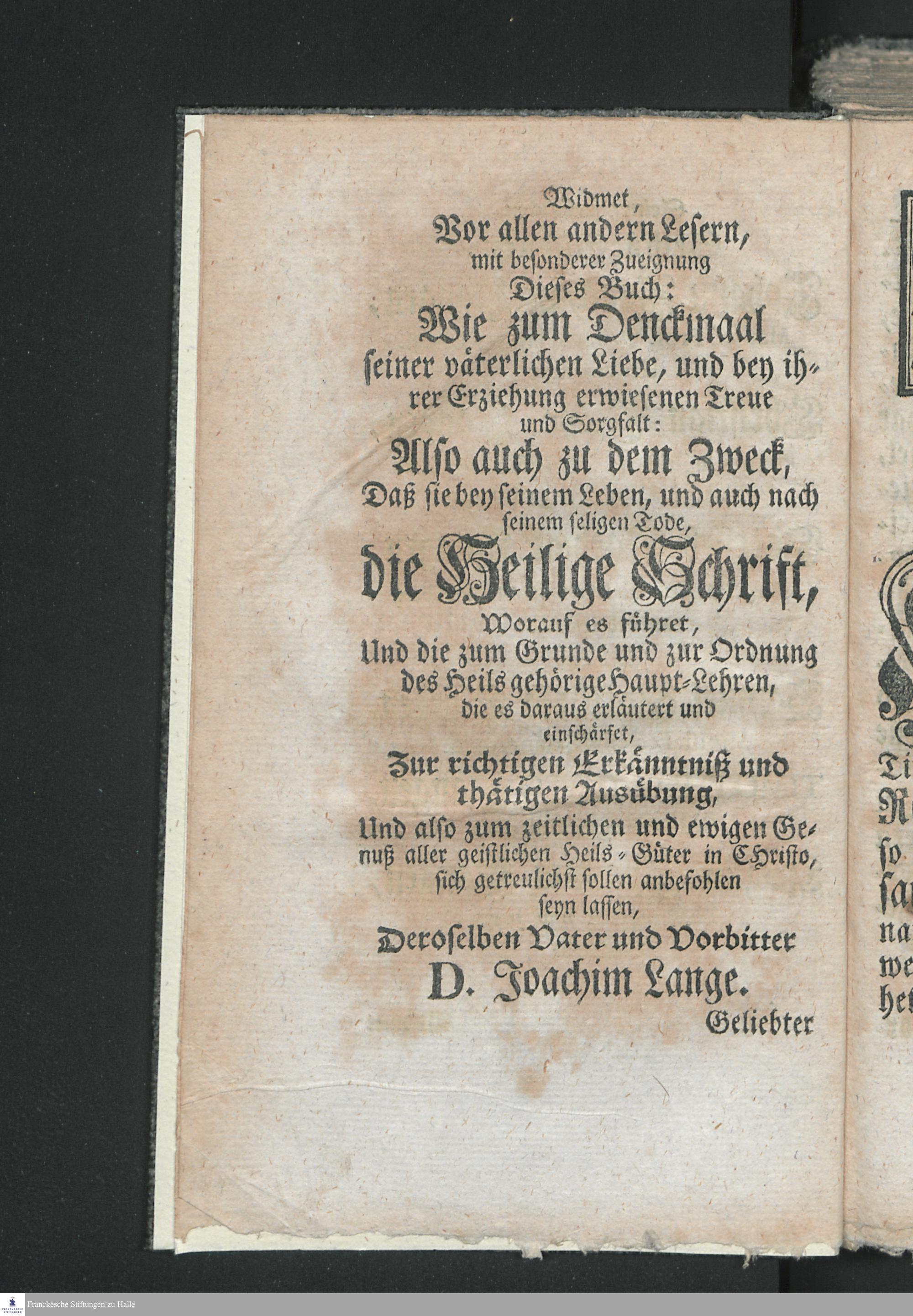 Ausführliche Einleitung in die Heil. Schrift : Darinn der Leser, Nach vorgetragener Lehre von der Unsterblichkeit der menschlichen Seele, erstlich wider die Atheisten, auf die natürliche Theologie und Religion ; Und hernach Von dieser wider die Naturalisten auf die geoffenbahrete Meßianische und Christliche ... Religion, mit Uberzeugung von der göttlichen Auctorität der heil. Schrift ... Zur Prüfung aller unrichtigen Lehr-Verfassungen geführet wird / Aus dem Mosaischen Licht und Recht auf Verlangen zum gemeinen Gebrauch besonders ausgefertiget Von D. Joachim Langen, S. Theol. Prof. Ord.