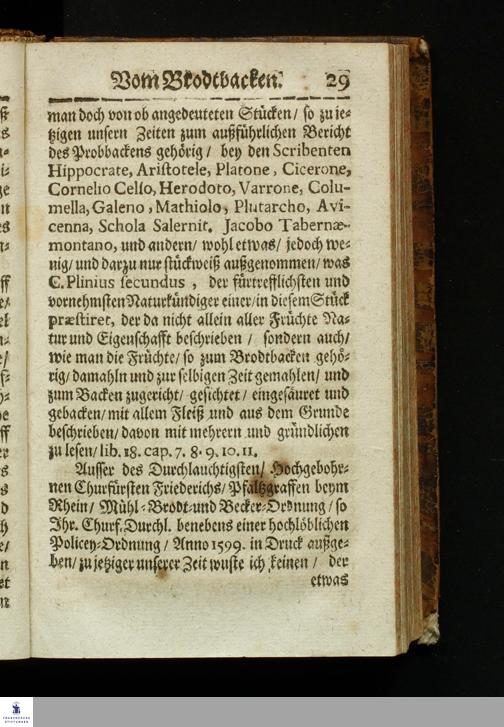 Bericht Vom Brodt-Backen/ Fundiret und gerichtet auff die Substantz/ Natur/ Eigenschafft und Gütigkeit des Fruchtwachs/ und dann nach Art treulichen/ fleißigen vollnständigen mahlens/ sichtens einteigens/ säurens und backens : Dem gemeinem Vaterland/ gemeiner Wolfart/ und lieben Armuth zu sonderm Nutz und Frommen in Druck gegeben: Allen Proviantmeistern/ Verwaltern/ Haußhaltern und Haußvätern sehr nützlich und vorträglich zu wissen / Gestellet durch Sebaldum Müllern/ Bürgern zu Königsberg in Preussen
