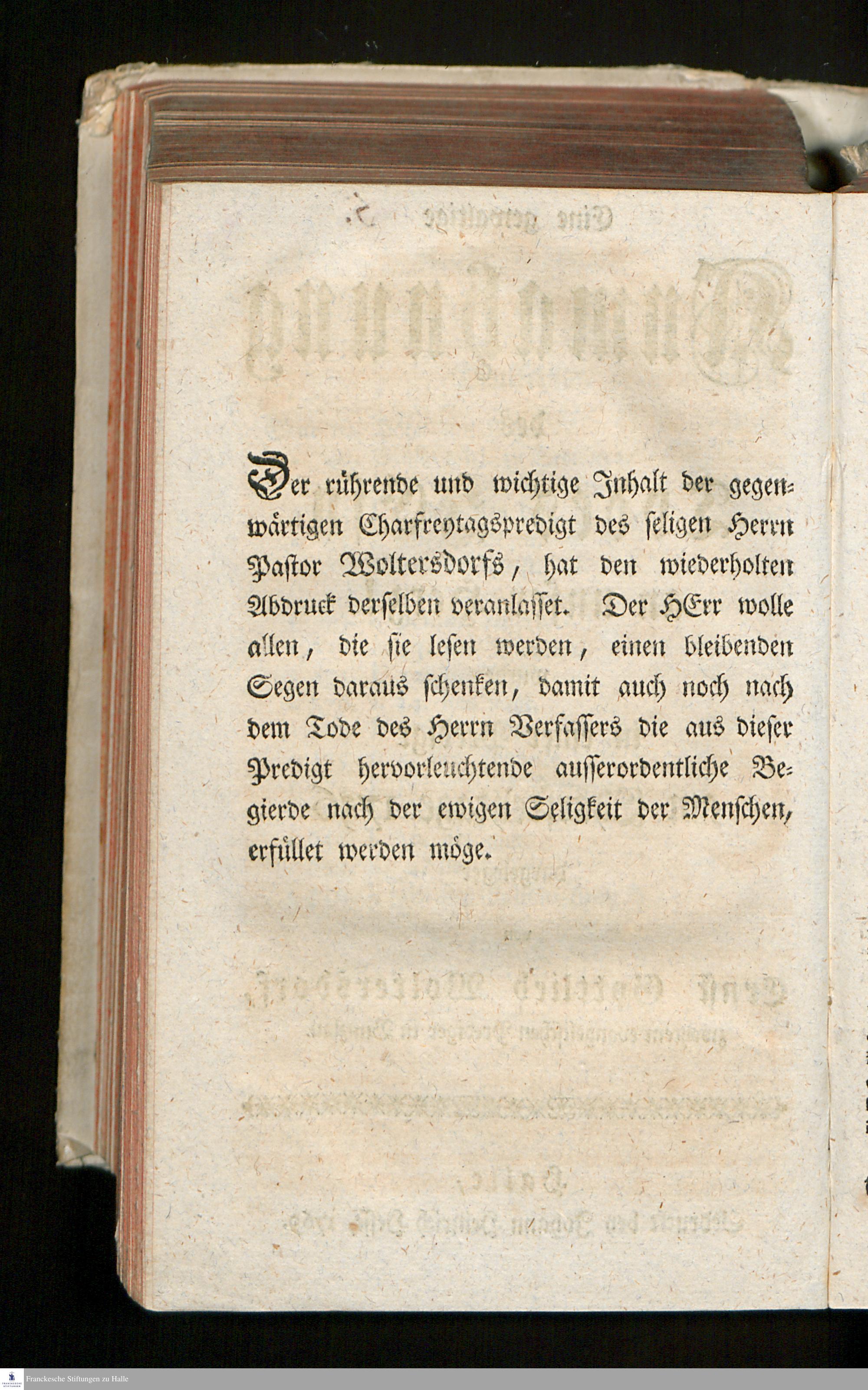 Eine gewaltige Anmahnung des Todes Jesu an unser Herz! : wurde in einer Predigt am Charfreytage 1756 dargeleget / von Ernst Gottlieb Woltersdorf, zweytem evangelischen Prediger in Bunzlau.