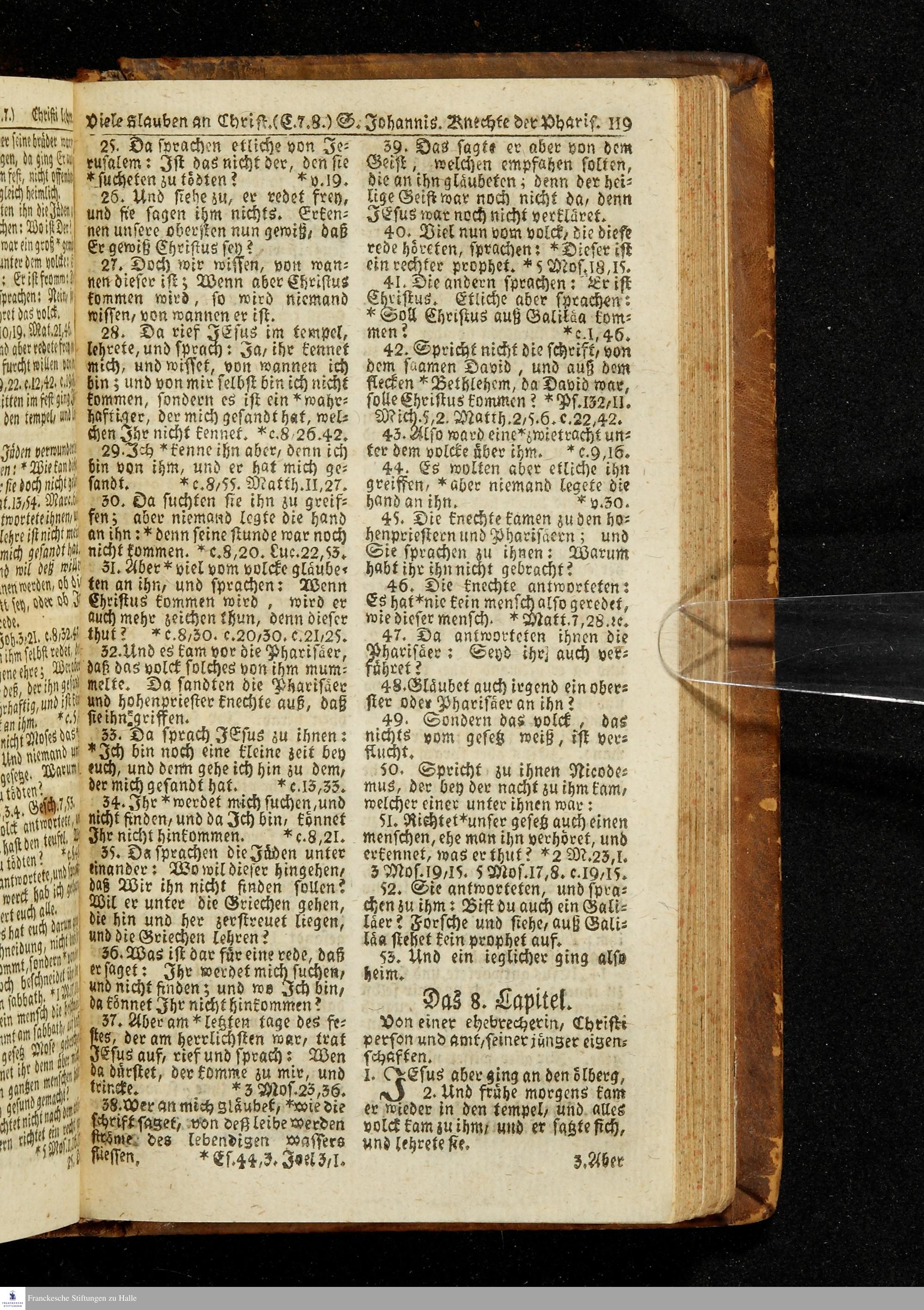 Biblia, Das ist: Die gantze Heil. Schrift Altes und Neues Testaments / Nach der Teutschen Ubersetzung D. Martin Luthers; Mit iedes Capitels kurtzen Summarien/ auch beygefügten vielen und richtigen Parallelen; Mit Fleiß übersehen, Und gegen einige/ sonderlich erstere/ Editiones des sel. Mannes gehalten, auch an unterschiedlichen Orten nach denselben eingerichtet, und von vielen in den bisherigen Exemplarien hin und wieder eingeschlichenen druckfehlern gesaubert. Nebst einer Vorrede Hn. Baron Carl Hildebrands v. Canstein.