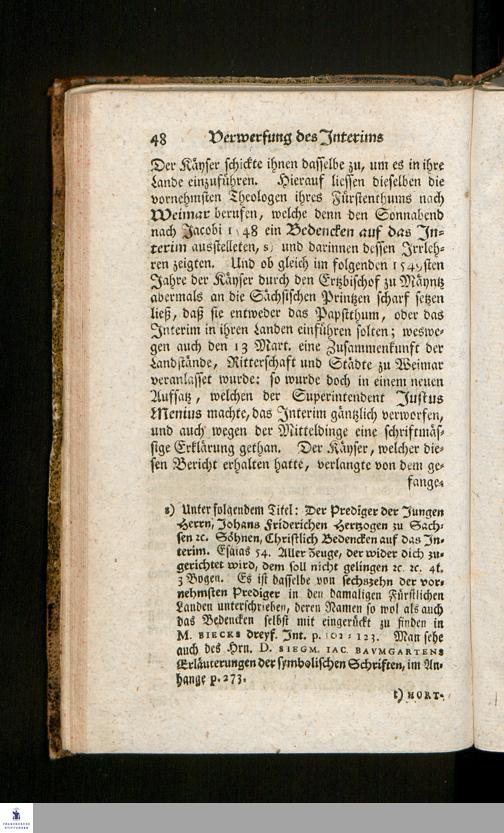 Kurtzgefaßte Nachricht von den wegen des Interims vor zweyhundert Jahren so wol in der Stadt Halle, als auch sonst noch vorgefallenen Merckwürdigsten Begebenheiten : zum erneuerten Andencken der damals gar sonderlich über waltenden Güte Gottes, aus verschiedenen dahin gehörigen Schriften der Kirchen- und politischen Geschichte mitgetheilet / von Johann George Kirchnern, Adjuncto Ministerii und Predigern bey der Kirche zur L. Frauen.