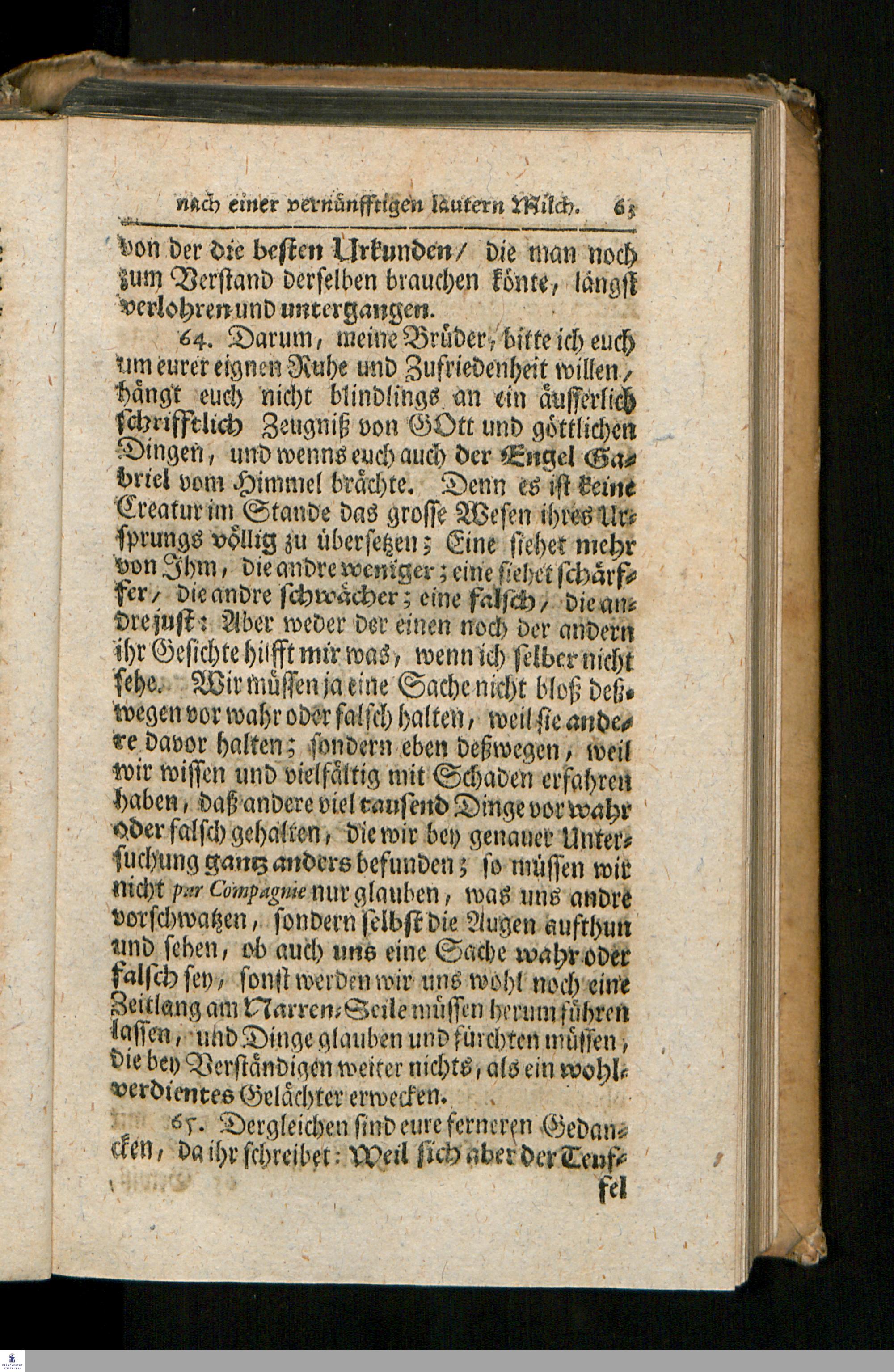 Die Begierde Nach der Vernünfftigen Lautern Milch An Einigen Säuglingen der ewigen Liebe bewundert : Bey Oeffentlicher Beantwortung Eines hertzlichen Ermunterungs-Schreibens Einiger So ungenannter/ als unbekannter Brüder, denen seine unverfälschte Gegen-Liebe zu bezeugen vor seine Schuldigkeit erachtet / ihr Ergebenster Mit-Bruder Johann Christian Edelmann.
