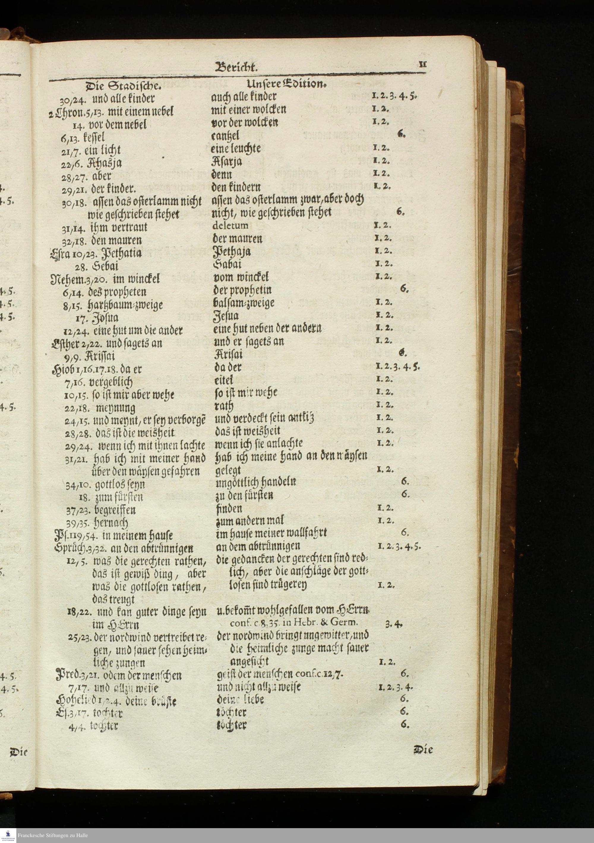 Biblia, Das ist: Die gantze Heil. Schrift Altes und Neues Testaments / Nach der Teutschen Ubersetzung D. Martin Luthers; Mit iedes Capitels kurtzen Summarien, und nöthigsten Parallelen; Mit fleiß übersehen, und gegen einige, sonderlich erstere, Editiones des sel. Mannes gehalten, auch an unterschiedlichen Orten nach denselben eingerichtet, und von vielen in den bisherigen Exemplarien hin und wieder eingeschlichenen Fehlern gesaubert. Nebst einer Vorrede Herrn Baron Carl Hildebrands von Canstein