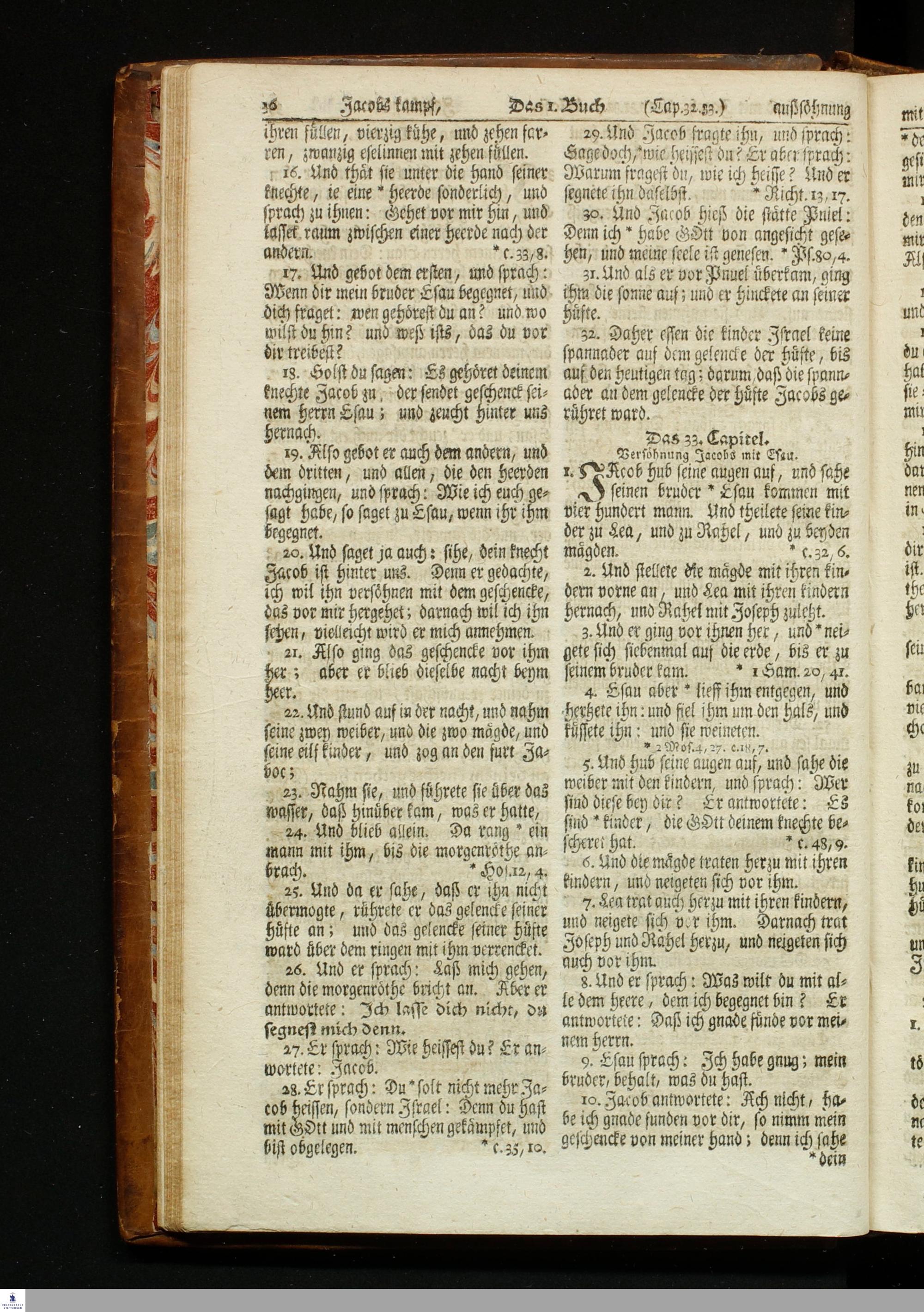 Biblia, Das ist: Die gantze Heil. Schrift Altes und Neues Testaments / Nach der Teutschen Ubersetzung D. Martin Luthers; Mit iedes Capitels kurtzen Summarien, und nöthigsten Parallelen; Mit fleiß übersehen, und gegen einige, sonderlich erstere, Editiones des sel. Mannes gehalten, auch an unterschiedlichen Orten nach denselben eingerichtet, und von vielen in den bisherigen Exemplarien hin und wieder eingeschlichenen Fehlern gesaubert. Nebst einer Vorrede Herrn Baron Carl Hildebrands von Canstein