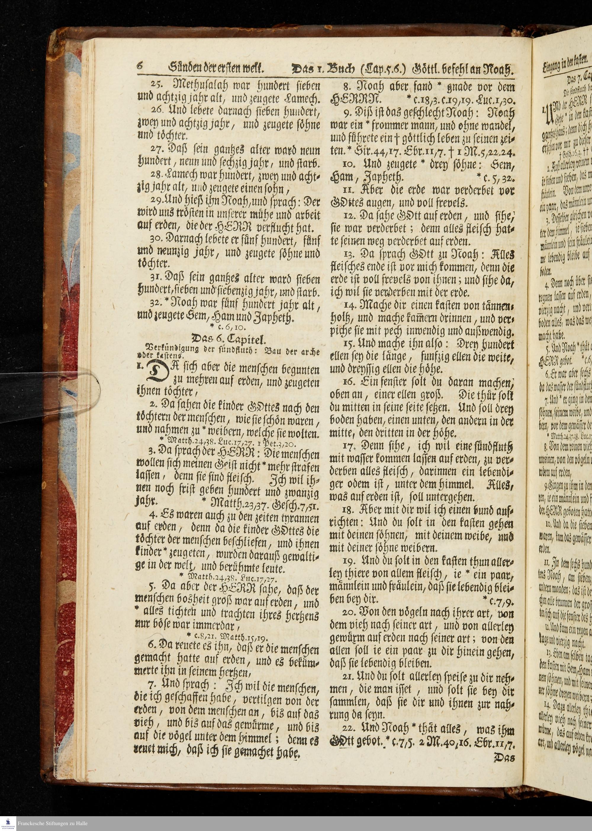 Biblia, Das ist: Die gantze Heil. Schrift Altes und Neues Testaments / Nach der Teutschen Ubersetzung D. Martin Luthers; Mit iedes Capitels kurtzen Summarien, auch beygefügten vielen und richtigen Parallelen; Mit fleiß übersehen/ und gegen einige/ sonderlich erstere/ Editiones des sel. Mannes gehalten, auch an unterschiedlichen Orten nach denselben eingerichtet, und von vielen in den bisherigen Exemplarien hin und wieder eingeschlichenen Fehlern gesaubert. Nebst der Vorrede Des S. Hn. Baron Carl Hildebrands von Canstein