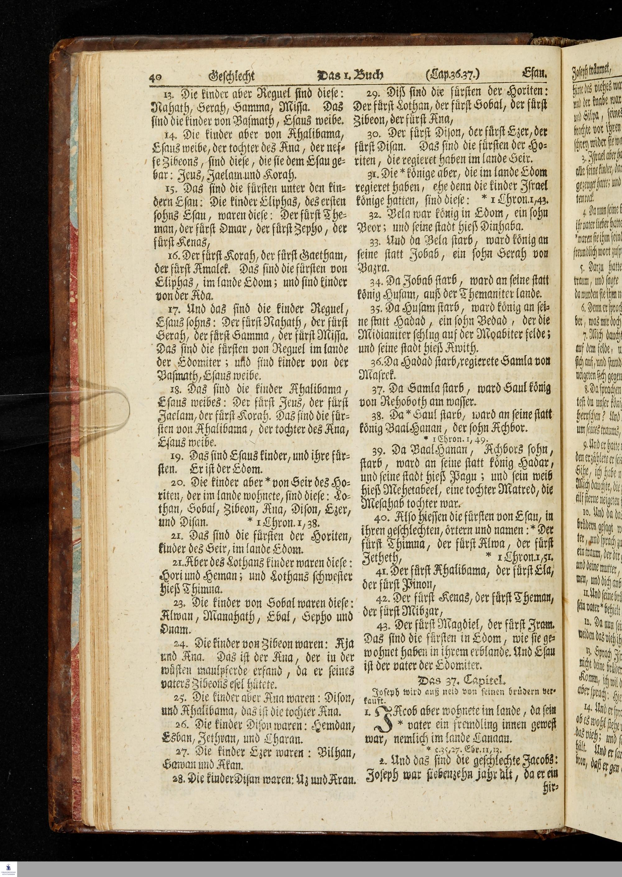 Biblia, Das ist: Die gantze Heil. Schrift Altes und Neues Testaments / Nach der Teutschen Ubersetzung D. Martin Luthers; Mit iedes Capitels kurtzen Summarien, auch beygefügten vielen und richtigen Parallelen; Mit fleiß übersehen/ und gegen einige/ sonderlich erstere/ Editiones des sel. Mannes gehalten, auch an unterschiedlichen Orten nach denselben eingerichtet, und von vielen in den bisherigen Exemplarien hin und wieder eingeschlichenen Fehlern gesaubert. Nebst der Vorrede Des S. Hn. Baron Carl Hildebrands von Canstein