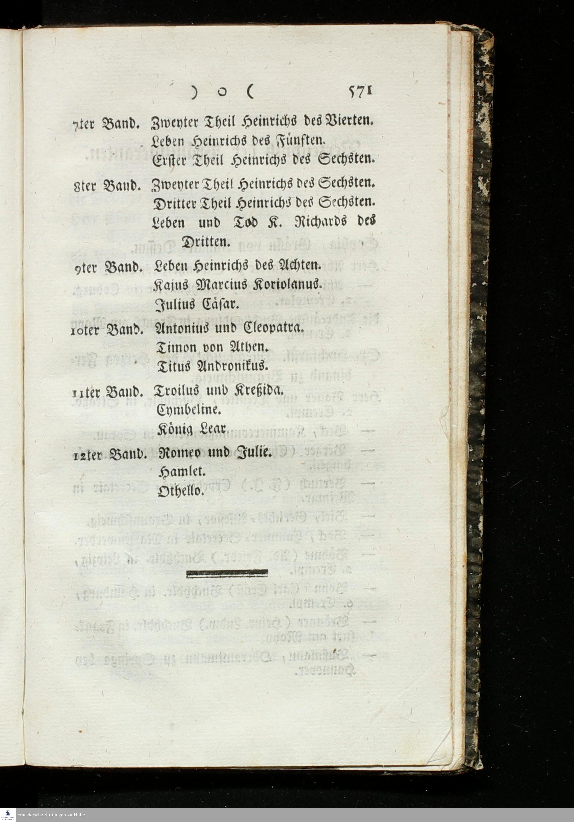 Zwölfter Band (1777) Romeo und Julie / William Shakespeare
