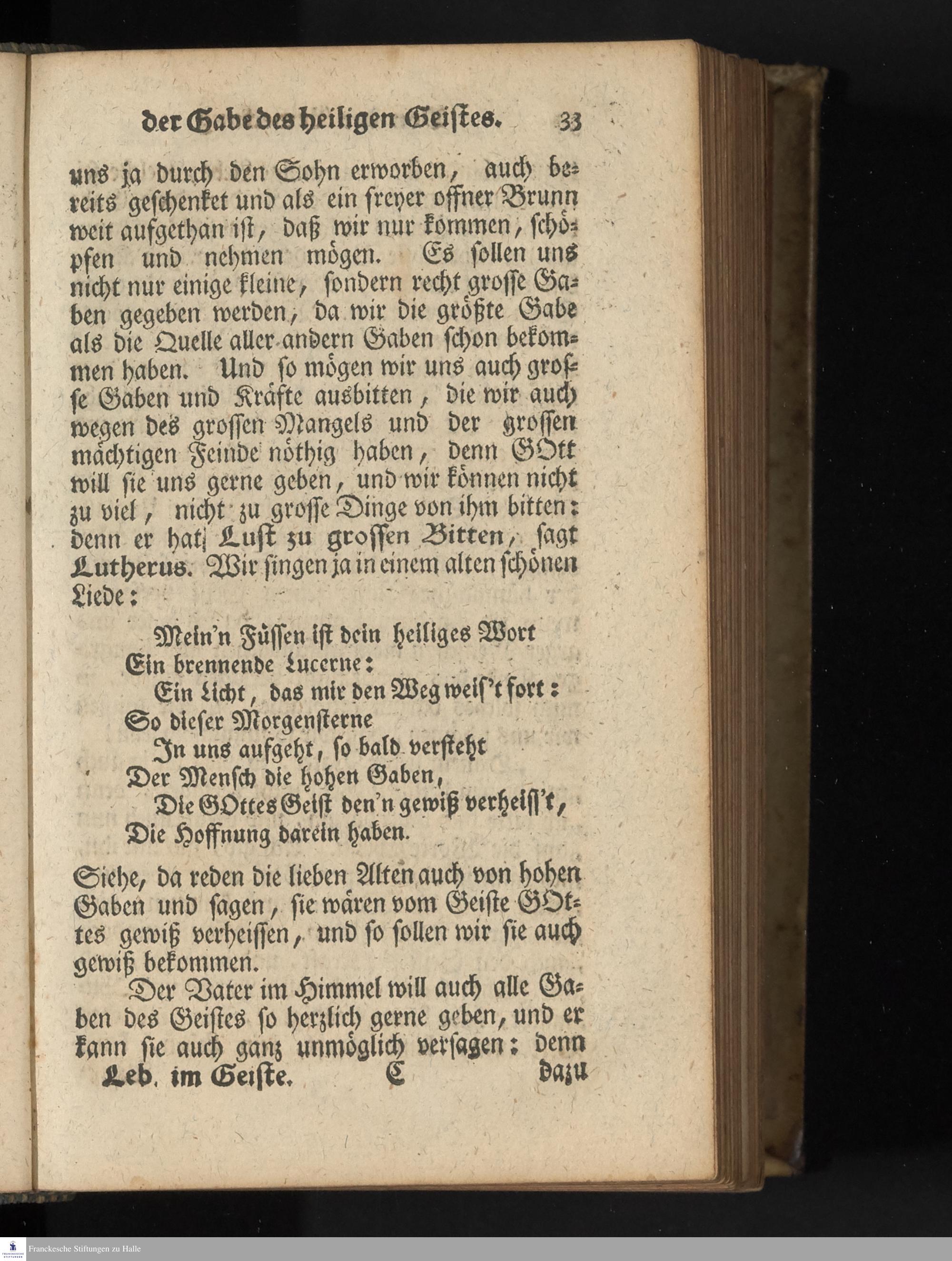 Das Leben im Geiste, bestehend in gottseligen Betrachtungen über des heiligen Geistes Person, Aemter, Gaben und Wirkungen : Nebst vier Vorbereitungen aufs Pfingstfest : Mit nöthigem Register und einer Vorrede in Druck gegeben / von Carl Heinrich v. Bogatzky.