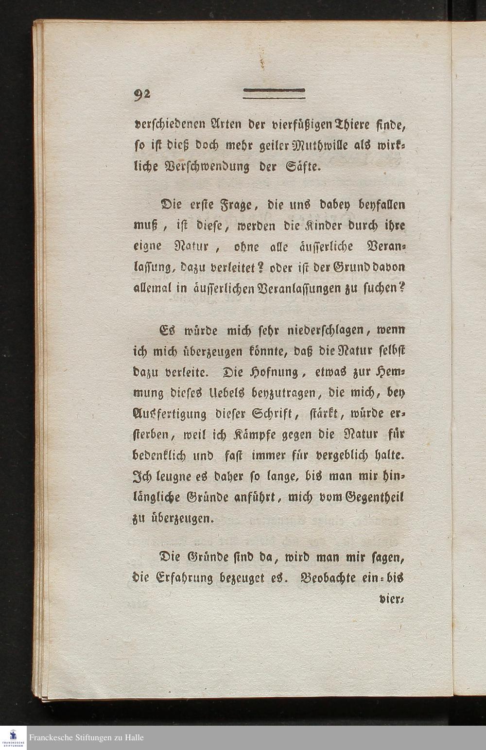 Erster Abschnitt. Von der Nothwendigkeit über die heimlichen Sünden der Jugend zu schreiben.