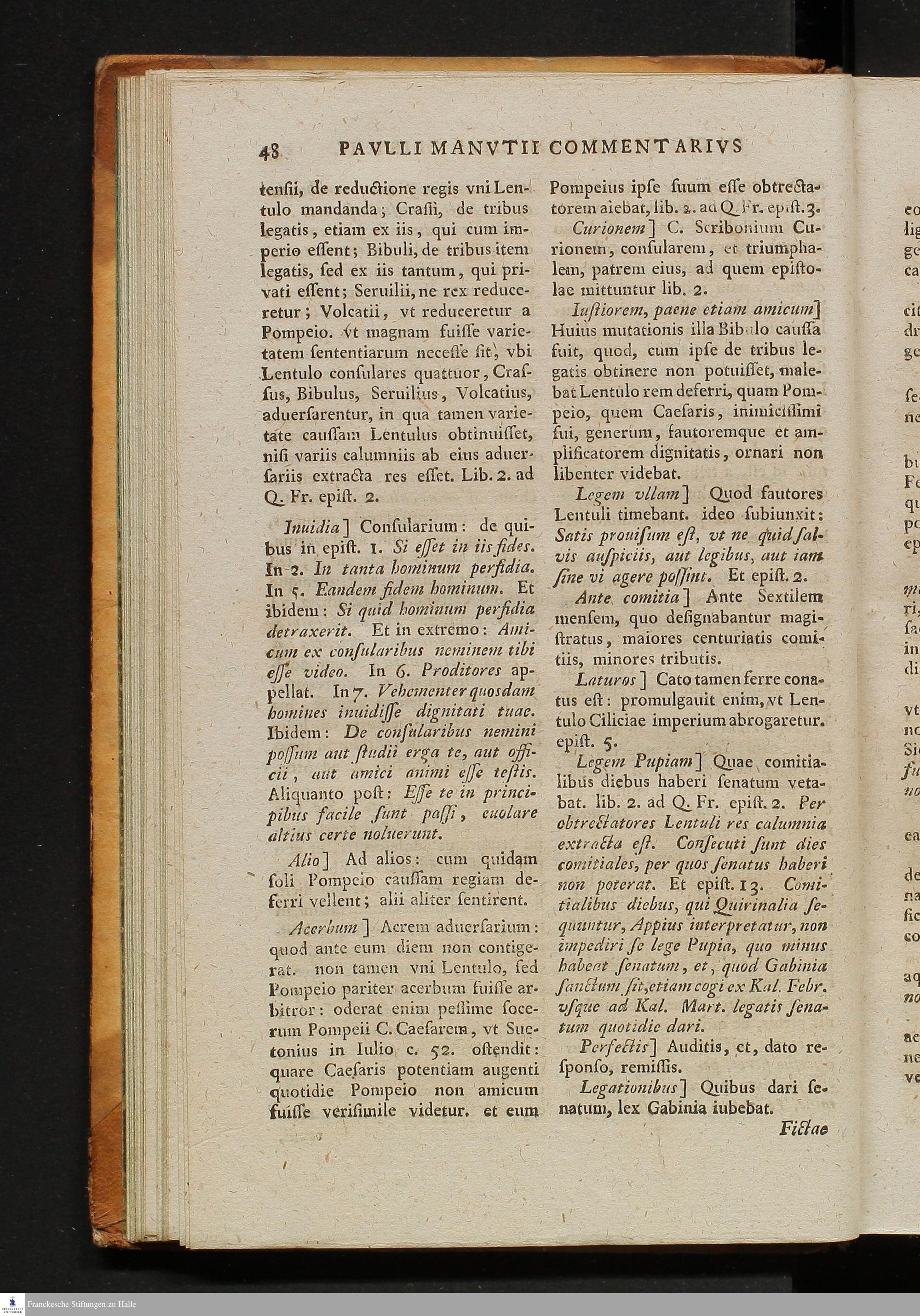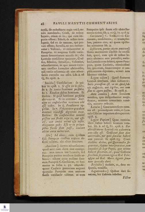 Pauli Manutii Commentarius In M. Tulli Ciceronis Epistolas Quae Familiares Vocan...