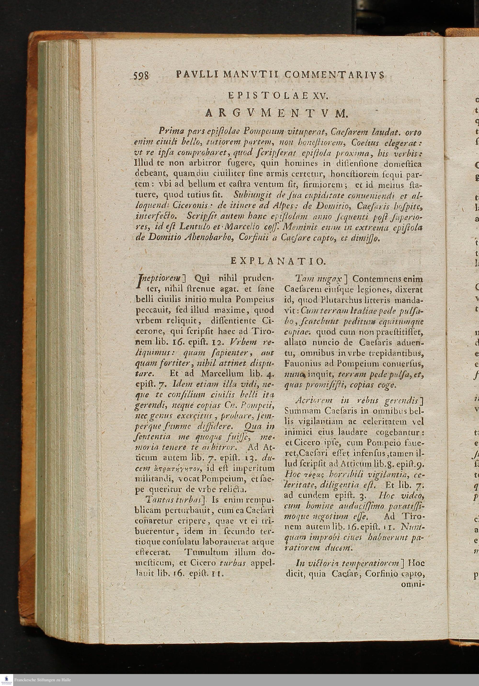 Pauli Manutii Commentarius In M. Tulli Ciceronis Epistolas Quae Familiares Vocan...