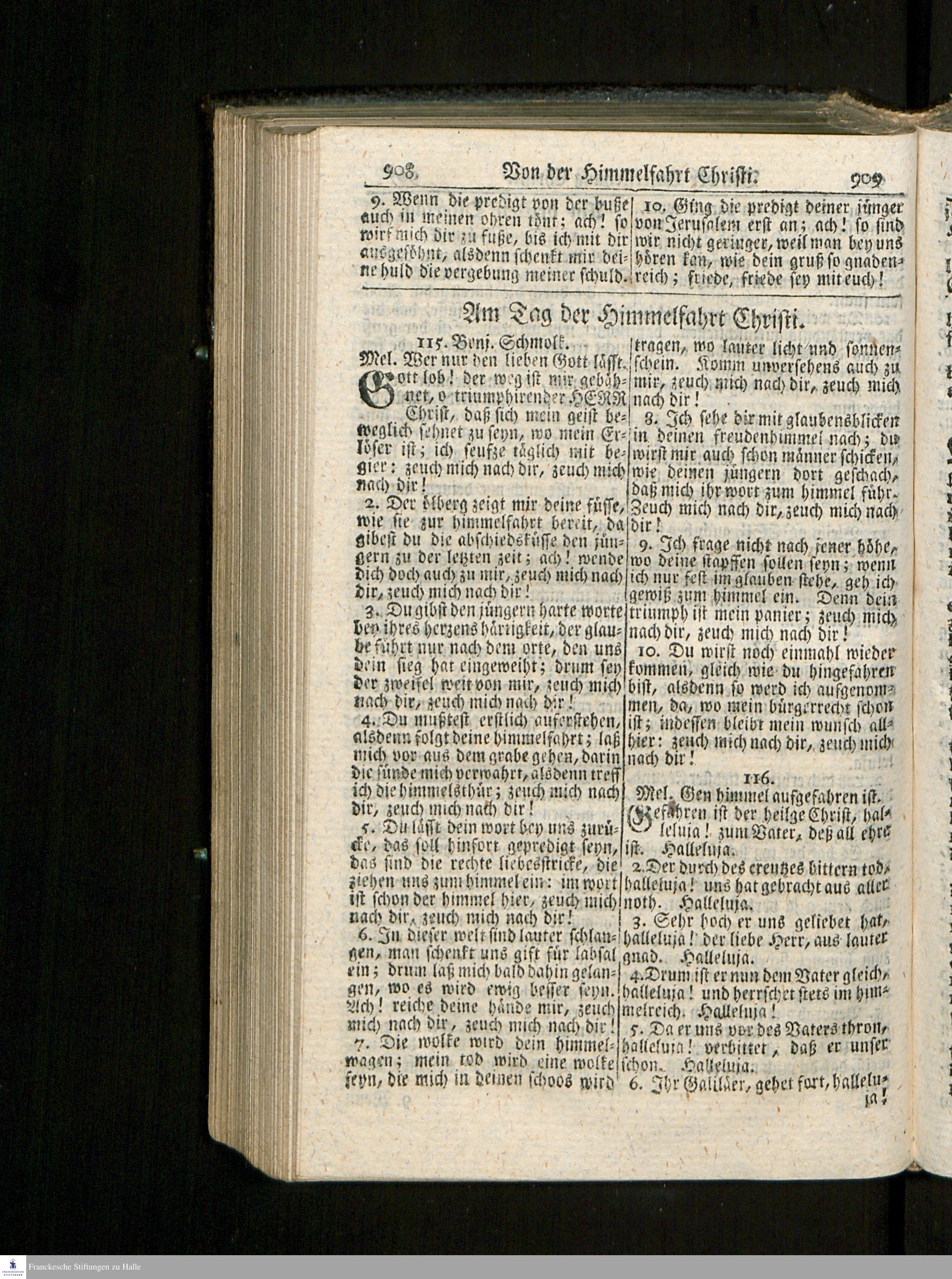 Geistliches neuvermehrtes Gothaisches Gesang-Buch : worinnen D. Martin Luthers und anderer frommen Christen geistreiche Lieder und Gesänge 1369 an der Zahl enthalten : nach Ordnung der Jahrszeit und des Catechismi ein- und abgetheilet / nebst einer Vorrede von Johann Benjamin Huhn, Generalsuperintendent und Oberconsistorialrath zum Friedenstein