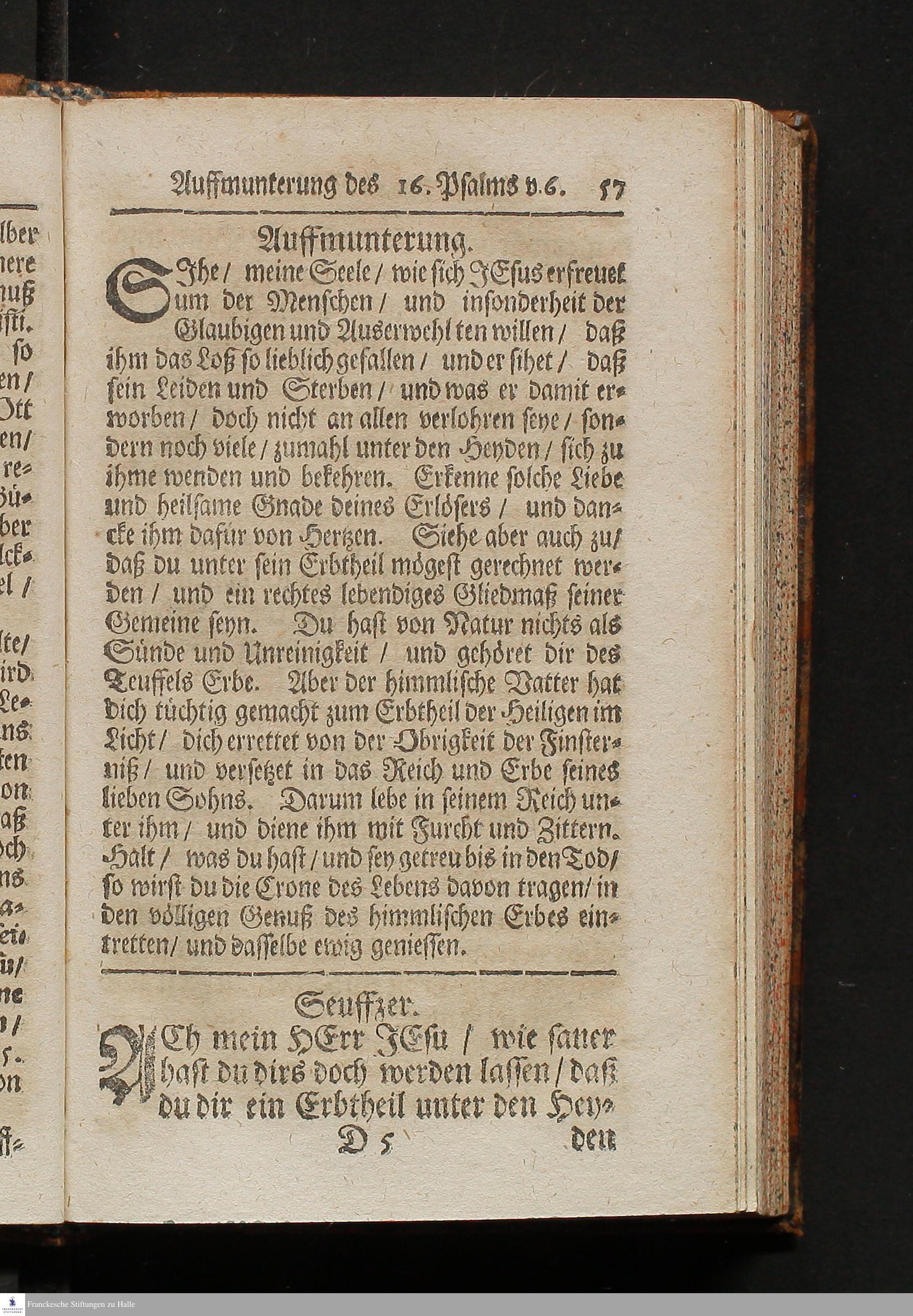 Das Güldene Kleinod Davids/ Oder Erklärung der jenigen Psalmen/ die diesen Titul führen/ : Als da sind Der XVI. LVI. LVII. LVIII. LIX. LX. Welche Von Wort zu Wort ausgeleget/ aus allen Versen viel erbaulich und tröstliche Lehren gezogen/ wie auch darauff besondere Seelen-Ermunterungen und andächtige Seuffzer gestellet worden / Von Johann Henrich Mayen/ der H. Schrifft Doctore und Prof. P. auff der Universität Giessen/ des Fürstl. Consistorii daselbst Adsessore, ... und des Alsfeldischen und Marburgischen Districts Superintendenten.