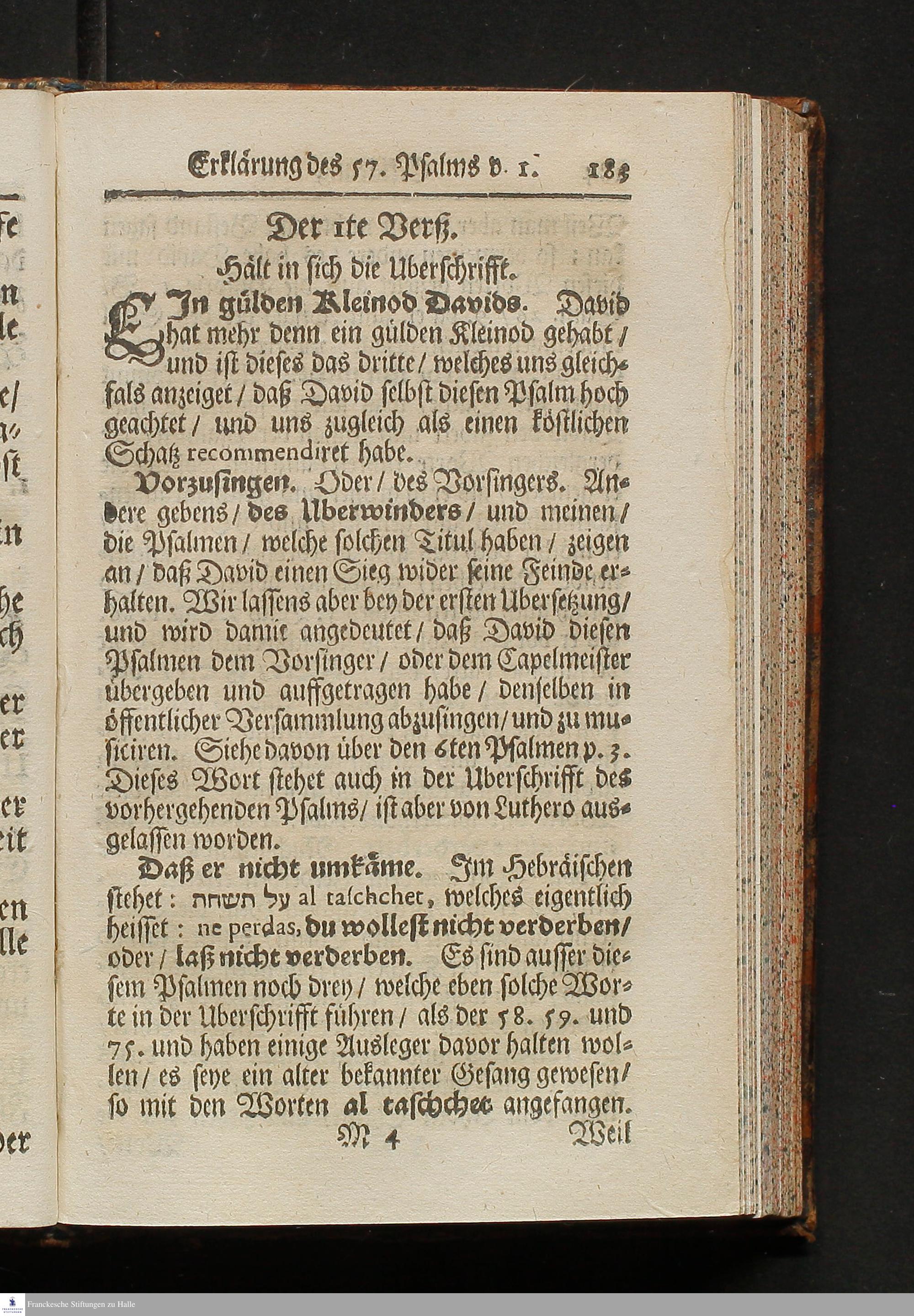 Das Güldene Kleinod Davids/ Oder Erklärung der jenigen Psalmen/ die diesen Titul führen/ : Als da sind Der XVI. LVI. LVII. LVIII. LIX. LX. Welche Von Wort zu Wort ausgeleget/ aus allen Versen viel erbaulich und tröstliche Lehren gezogen/ wie auch darauff besondere Seelen-Ermunterungen und andächtige Seuffzer gestellet worden / Von Johann Henrich Mayen/ der H. Schrifft Doctore und Prof. P. auff der Universität Giessen/ des Fürstl. Consistorii daselbst Adsessore, ... und des Alsfeldischen und Marburgischen Districts Superintendenten.
