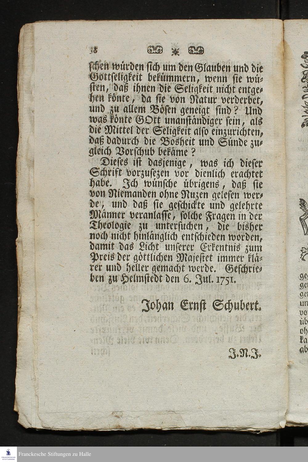 Johan Friedrich Wachsmanns Predigers der Evangelischen Gemeine zu Mellenbach in dem Fürstenthum Schwarzburg Untersuchung der Frage Warum GOtt den gefallenen Engeln keinen Erlöser gegeben habe : Nebst einer Vorrede Sr. Hochwürden Herrn Abt Schuberts