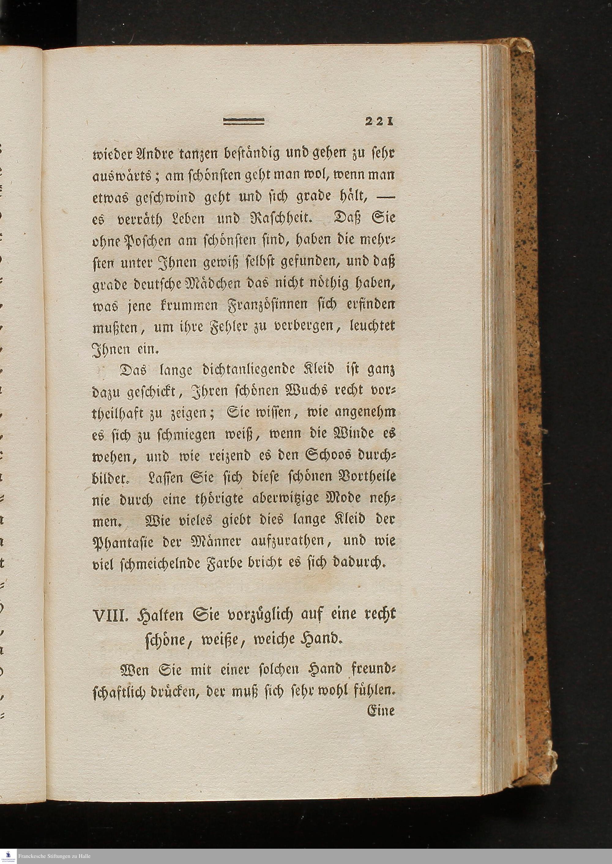VIII. Halten Sie vorzüglich auf eine recht schöne, weiße, weiche Hand.