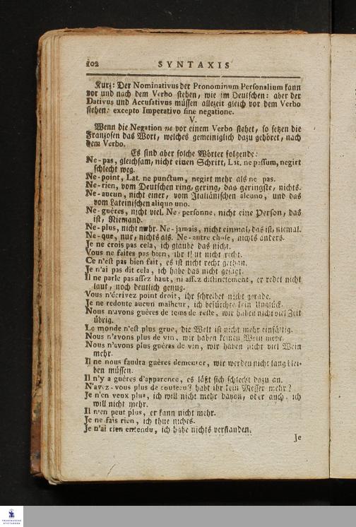 Neue und vollständige Königliche Französische Grammatica : Mit einem neu-eingerichteten Syntaxi, einem verbesserten Wörterbuche, manierlichen Gesprächen ... und nach jetziger Zeit wohlgesetzten Briefen : Bisher unter dem Nahmen des Herrn von Pepliers, vielmals herausgegeben, Gegenwärtig aber durchgehends aus des berühmten französischen Jesuiten, Hrn. Buffier, und anderer Gelehrten Anmerkungen auf das fleißigste verbessert, mit einem zulänglichen Unterricht von der .... Orthographie und Aussprache, einer .... Anweisung zur deutschen Titulatur, auch einem viel vergrösserten Churfl. Sächs. TitularBuche, aufs das neue übersehen, verbessert und vermehret